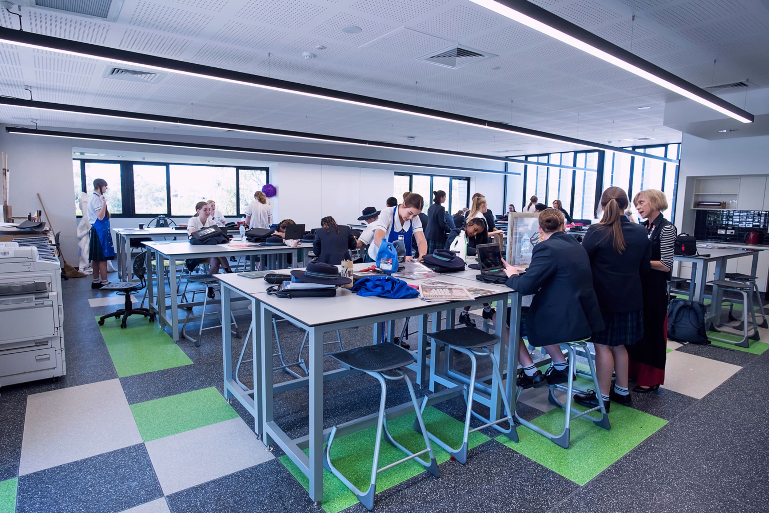 The Senior School reception and Student Services offices are located in the upper ground level, and secondary teaching staff and department heads are situated upstairs.