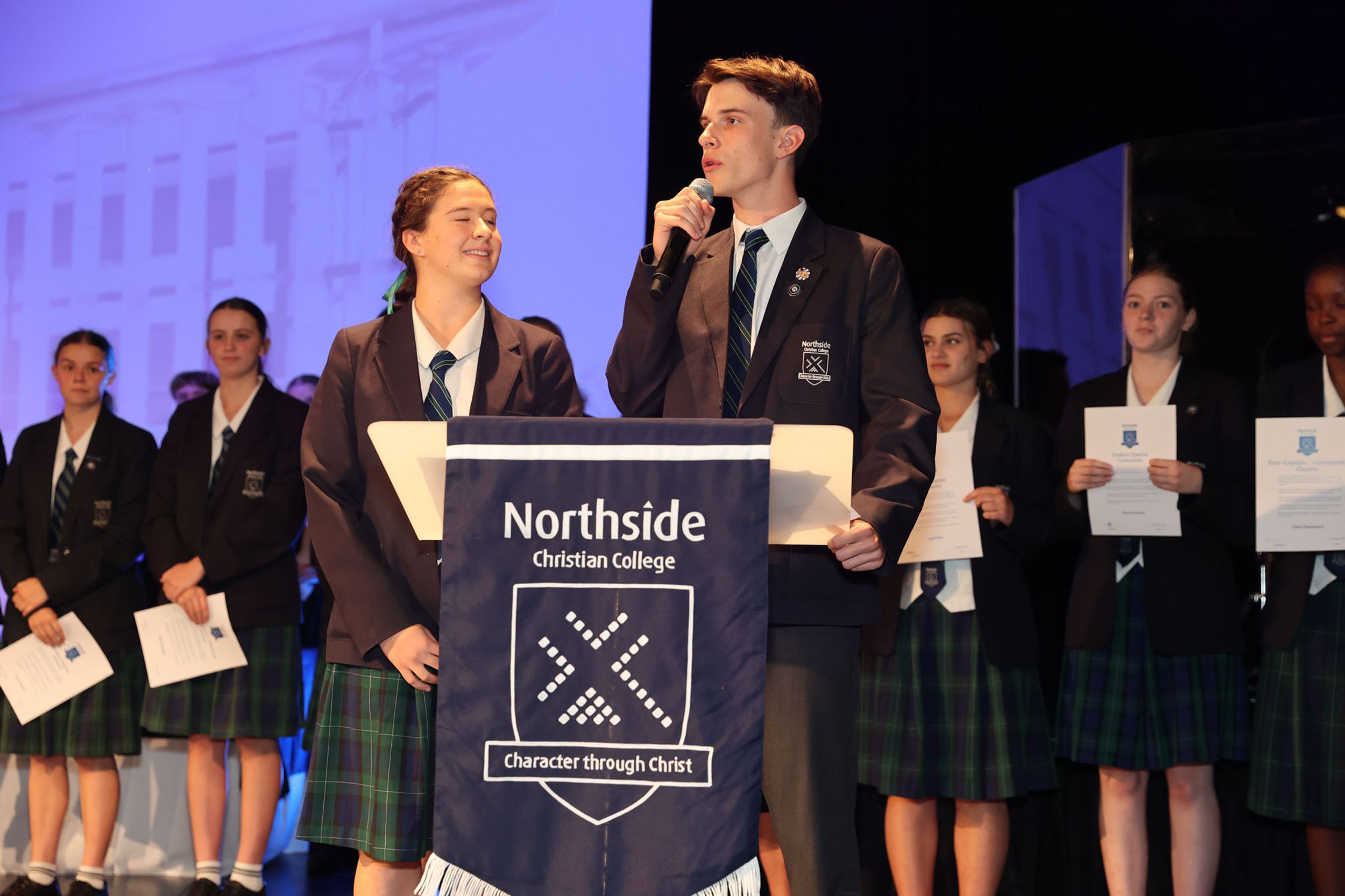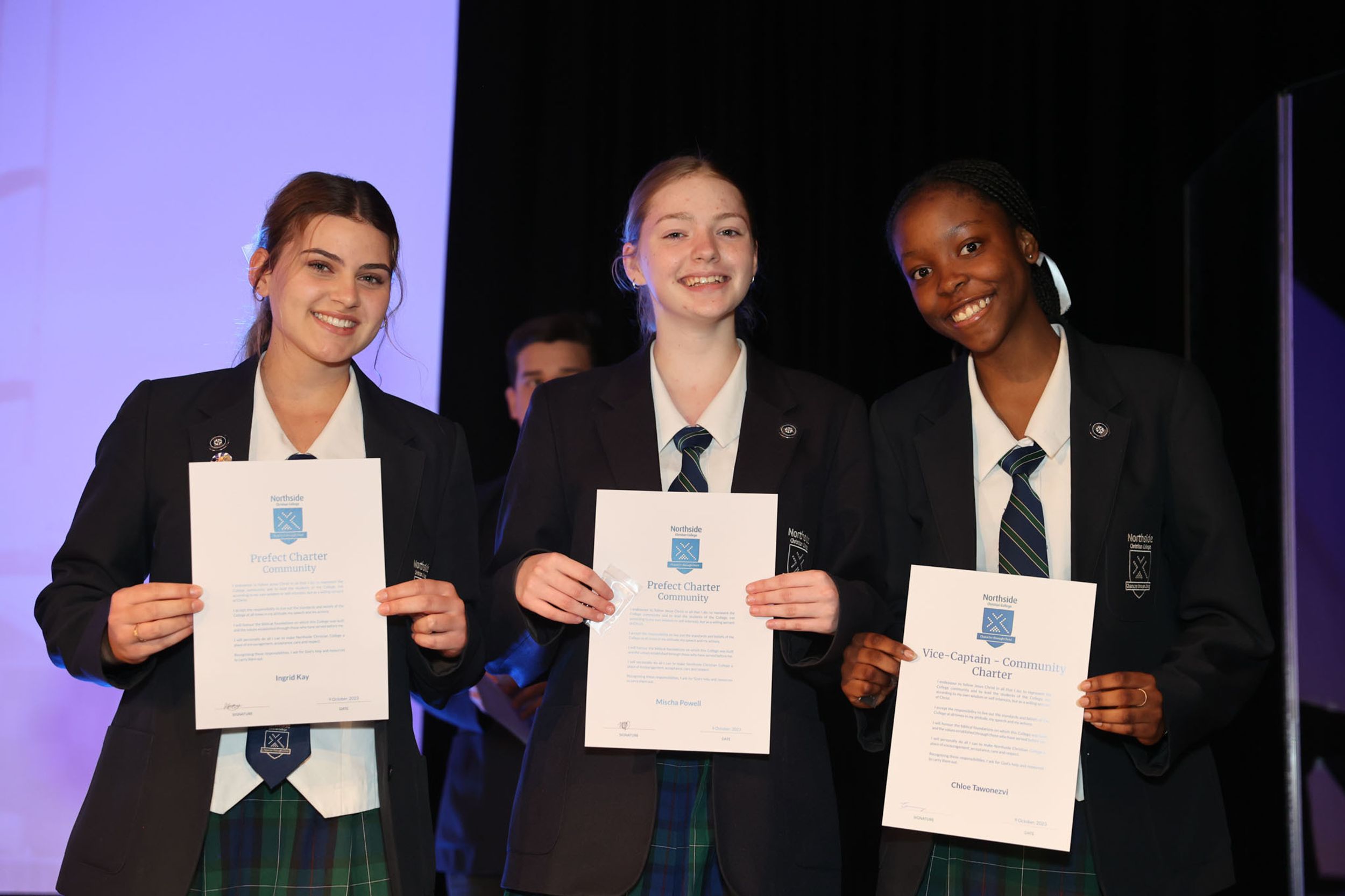 It was an exciting day today as the new leadership was inducted for 2023/24. College Captains Marna J & Oscar B. Community Vice Captain: Chloe T, Prefects: Mischa P & Ingrid K. Cultural Vice Captain: Emily Gibney, Prefects: Annabel W and Lily M. Missions Vice Captain: Katie D, Prefects: Kaela C and Tamara K. Communications Vice Captain: Evan G, Prefects: Charlie P and James S. Chapel Vice Captain: Levi N, Prefects: Joshua P and Dara H. Sports Vice Captains Abigail P and Dingani B, Prefects: Stephanie W and Raphael G. We thank and honour our outgoing Captains and Vice Captains for their hard work and commitment over the last year.