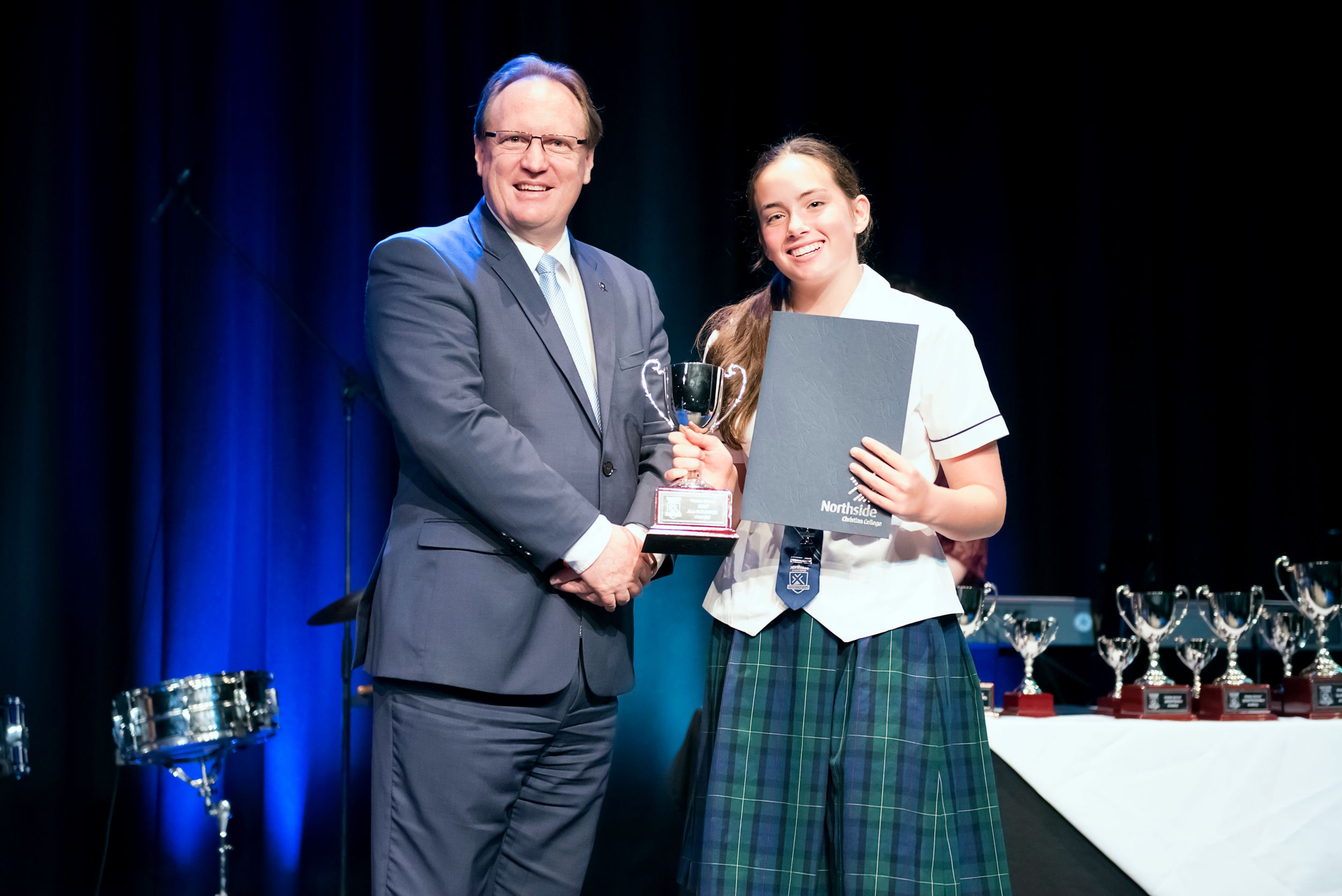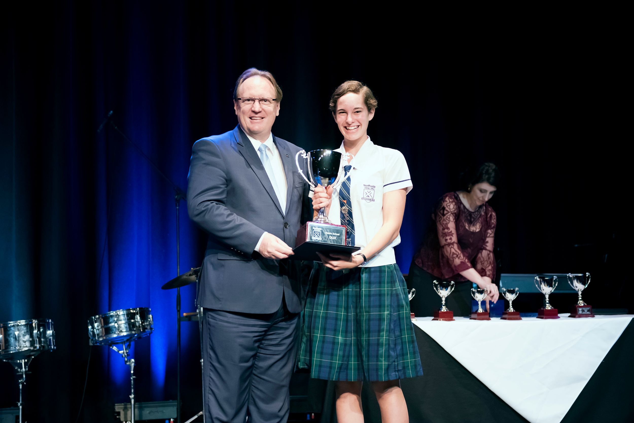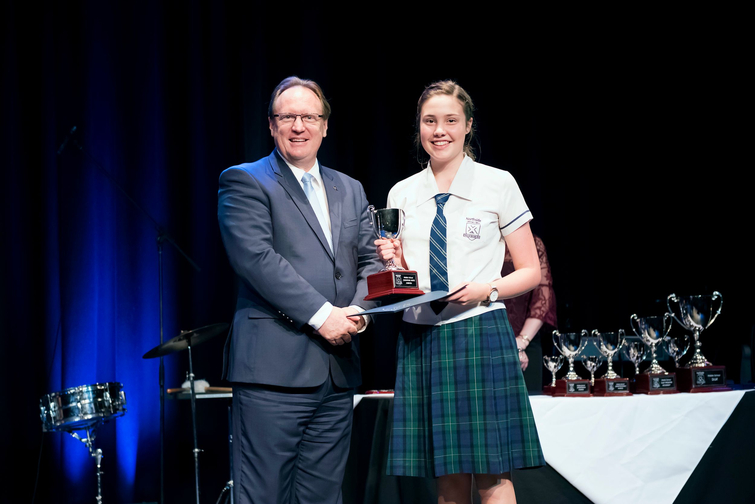 So what does burning or shining brightly look like in the day to day happenings of Middle School at Northside? Mrs Fiona Long, Head of Middle School, explained: "It is the shining light of unrivalled achievement: the Sports Awards Evening, the Da Vinci Festival, the musical ... This evening's academic award recipients showcase this very thing. It’s our leadership structure, which enables a team of student leaders to mould and direct the culture and events of the Middle School."