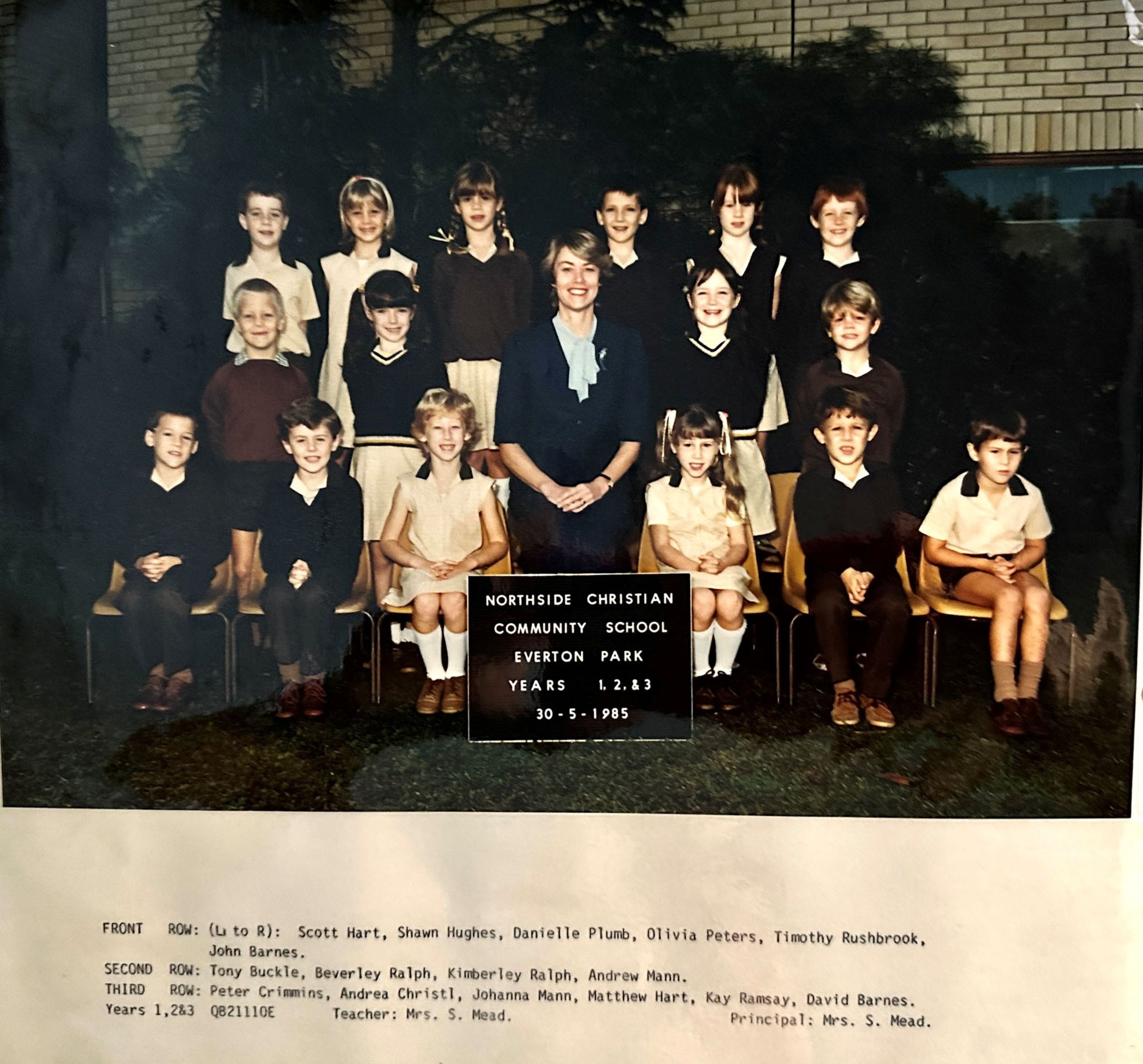 1985 Northside Christian Community School began with 14 students in Years 1-3