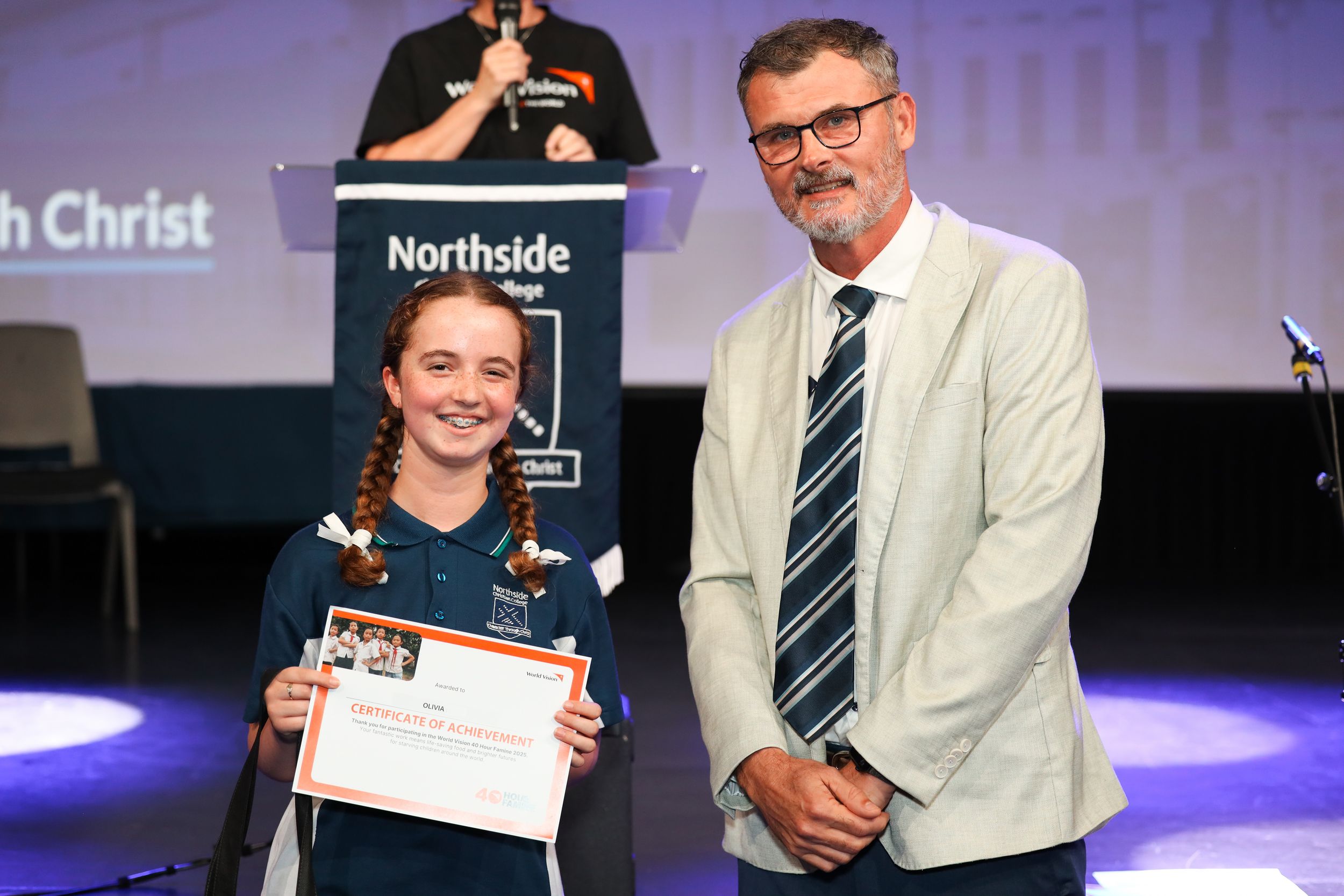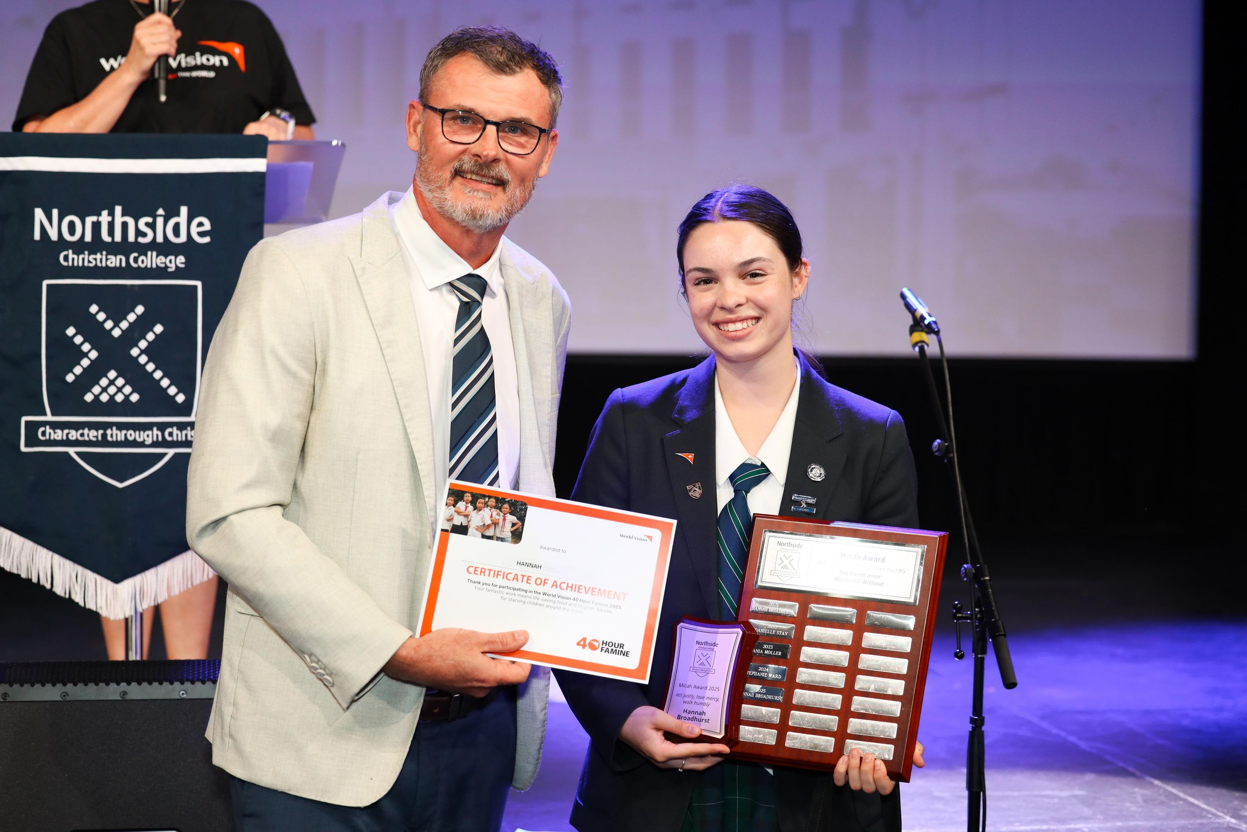 Our three top individual fundraisers were Elijah H, Yr12, Olivia E, Yr8, and Hannah B, Yr12, who received the Micah award for highest individual fundraiser.