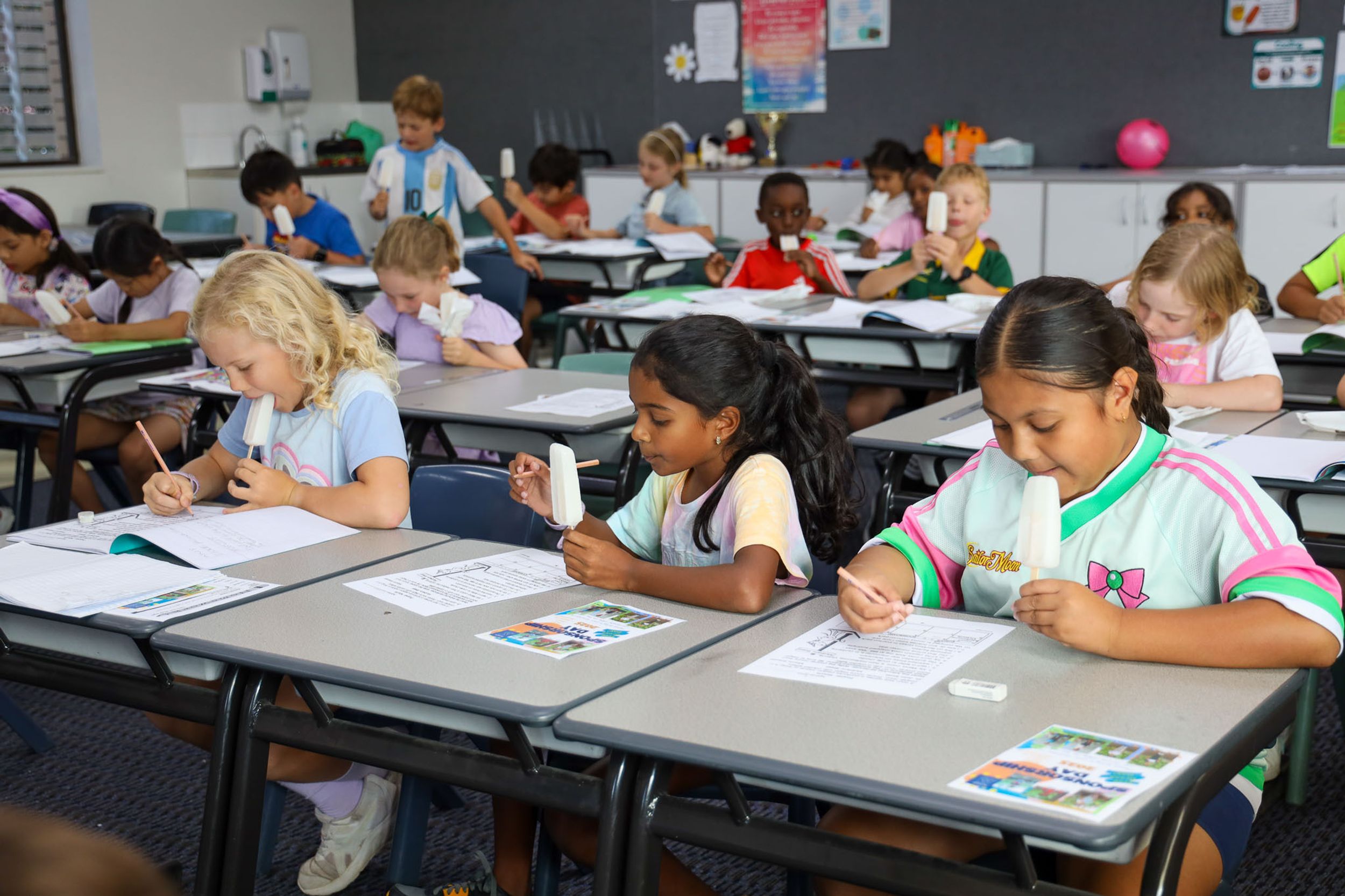 At exactly 12:00 pm, the Founder’s Bell rang, and classrooms across the school erupted in song as students and teachers sang Happy Birthday. Junior and Secondary School representatives collected icy poles for their classmates, ensuring every student had a sweet treat to celebrate the occasion. Meanwhile, staff gathered to enjoy a delicious birthday cake, reflecting on the school’s journey and the many lives it has impacted over the years.