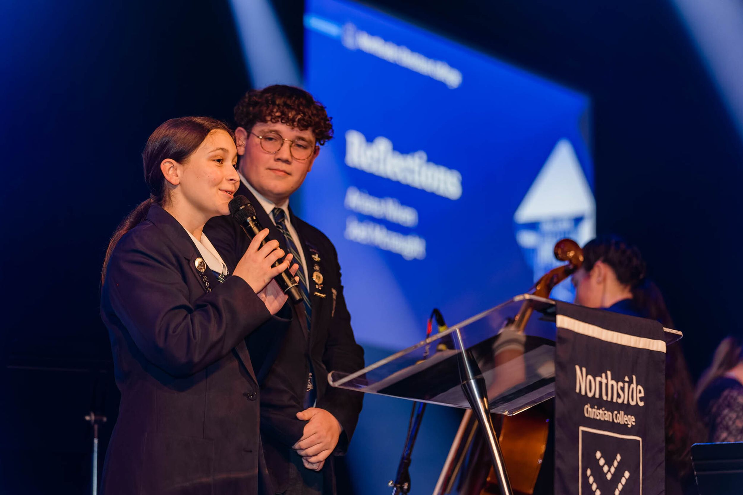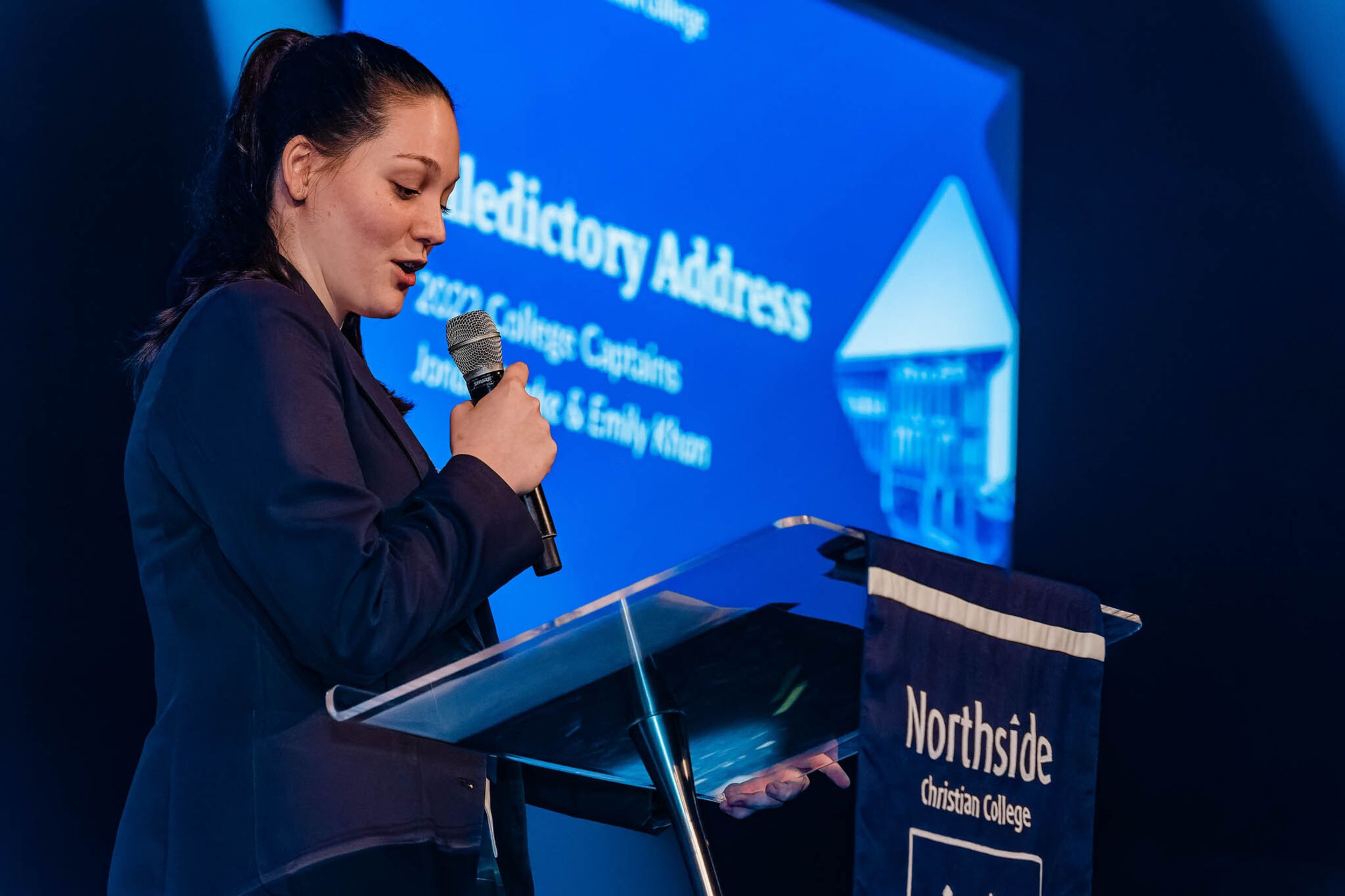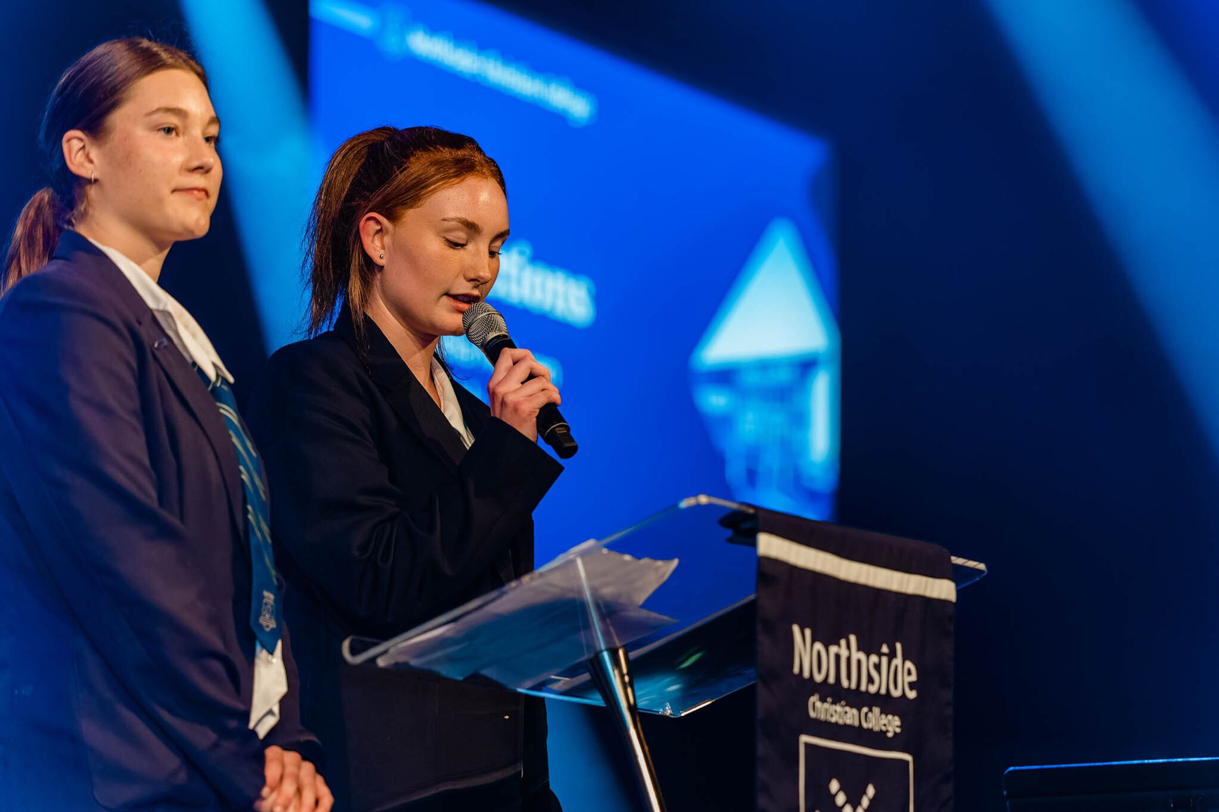 'Some of you can’t wait to get out of here, right? You’re the ones sitting there tapping your feet, glancing at your watches waiting for the end of this night. You honestly can’t wait to leave Northside and your schooling lives behind, and that’s totally fine. You’re ready and excited for the challenges that lay ahead of you in the years to come. Maybe you’re excited about Uni, or to start that apprenticeship you worked so hard for. Maybe you’re taking a Gap year and can’t wait to start all the plans you’ve got in place. However, some of you are nervous, right? You don’t really want to leave. Maybe Northside is all you’ve ever known and you won’t know what to do with yourself once we walk out those doors in a few short weeks, and that’s also totally fine. Maybe you’re one of the people that will just miss school, miss the Northside community and miss seeing friends and staff every day. Regardless of what boat you’re in though when it comes to these feelings of finishing, someone else is in it with you, right? That’s what it's been like throughout the last years of school. There’s always been someone who's got the same exam as you, the same homework due, or even just the same class as you. This is what Northside has been for us, a community we’re all in together, one to do life in and one that has more or less been shaped for us by our wonderful teachers and parents.