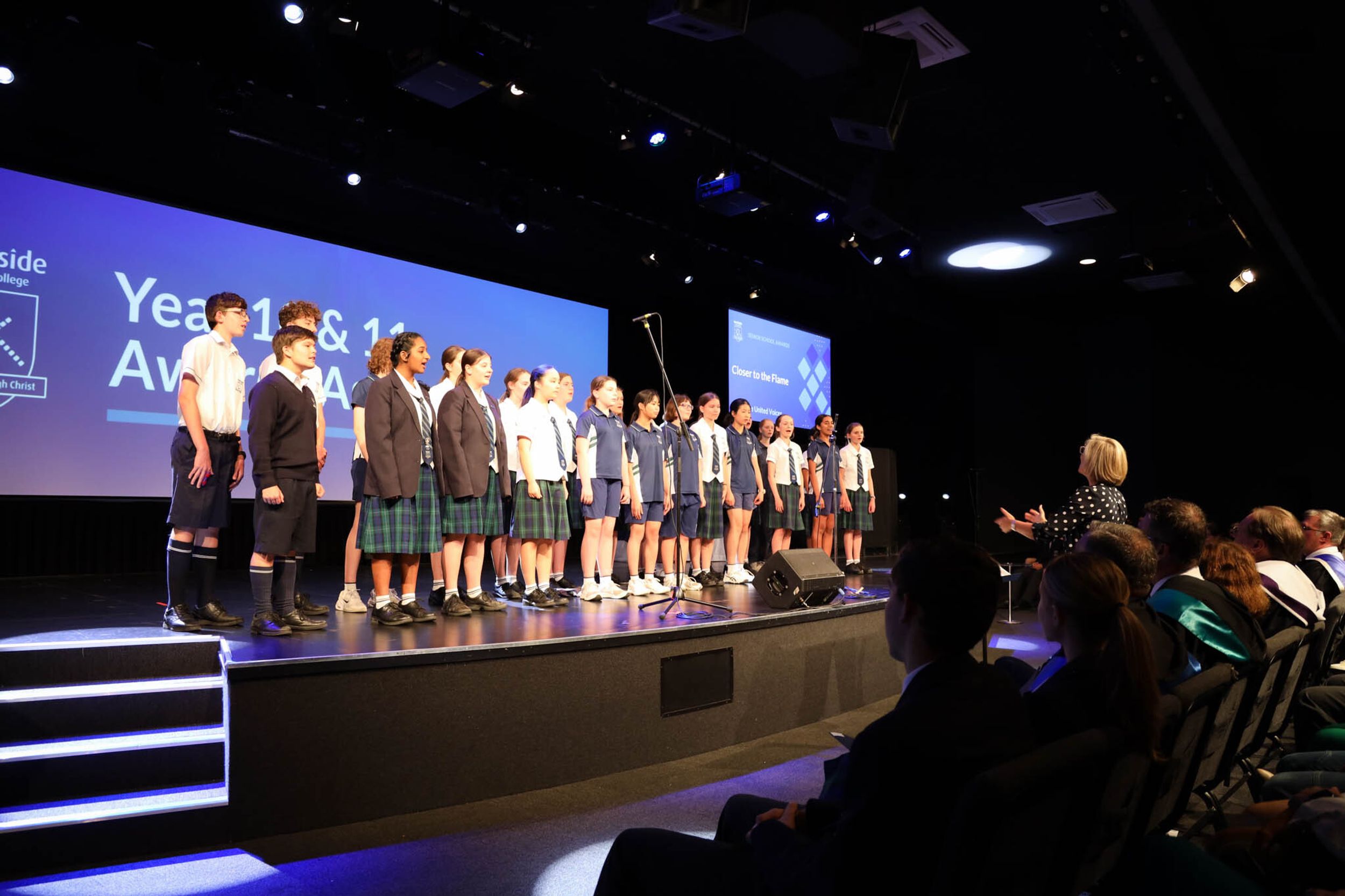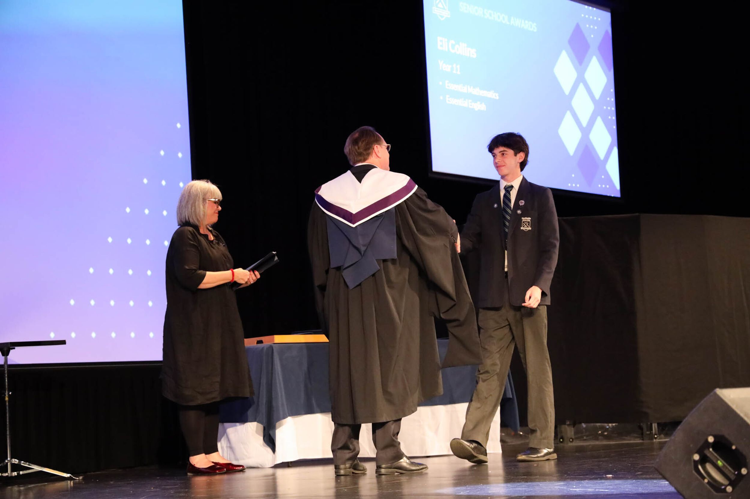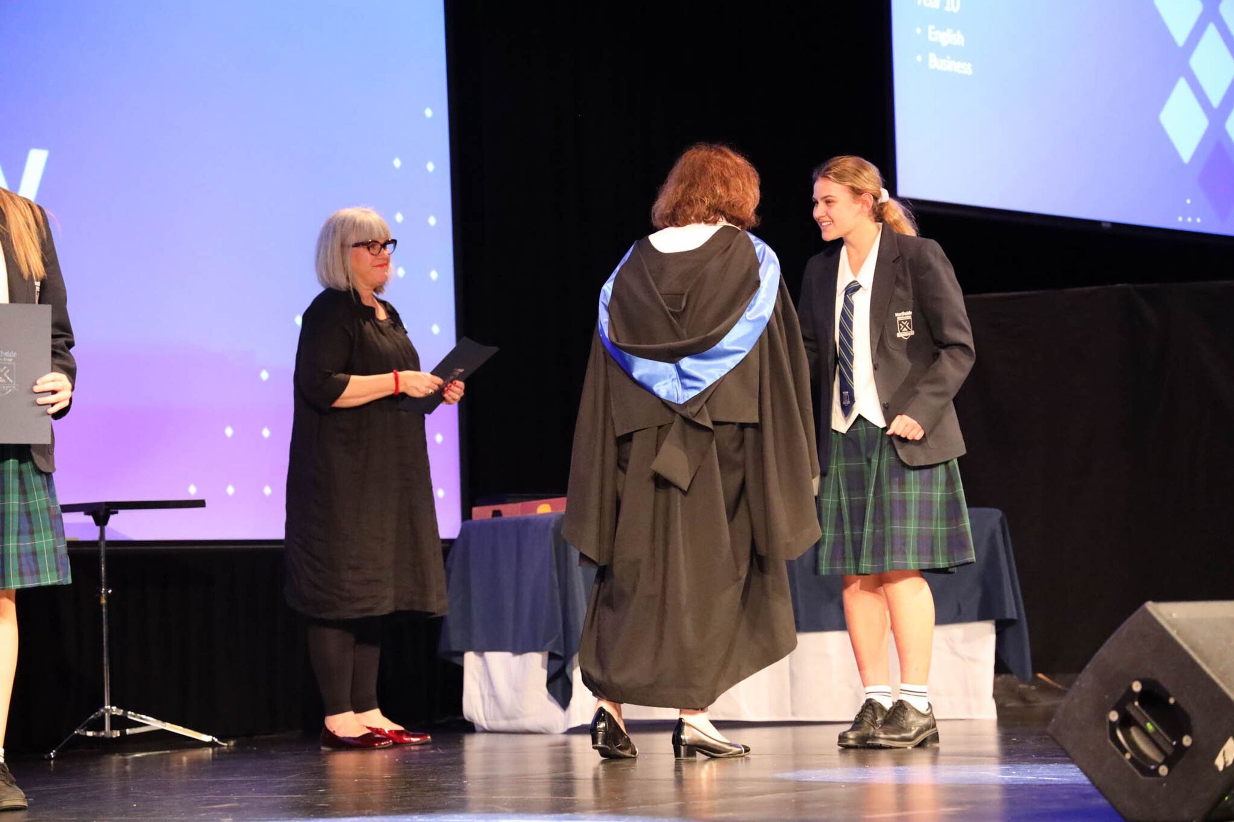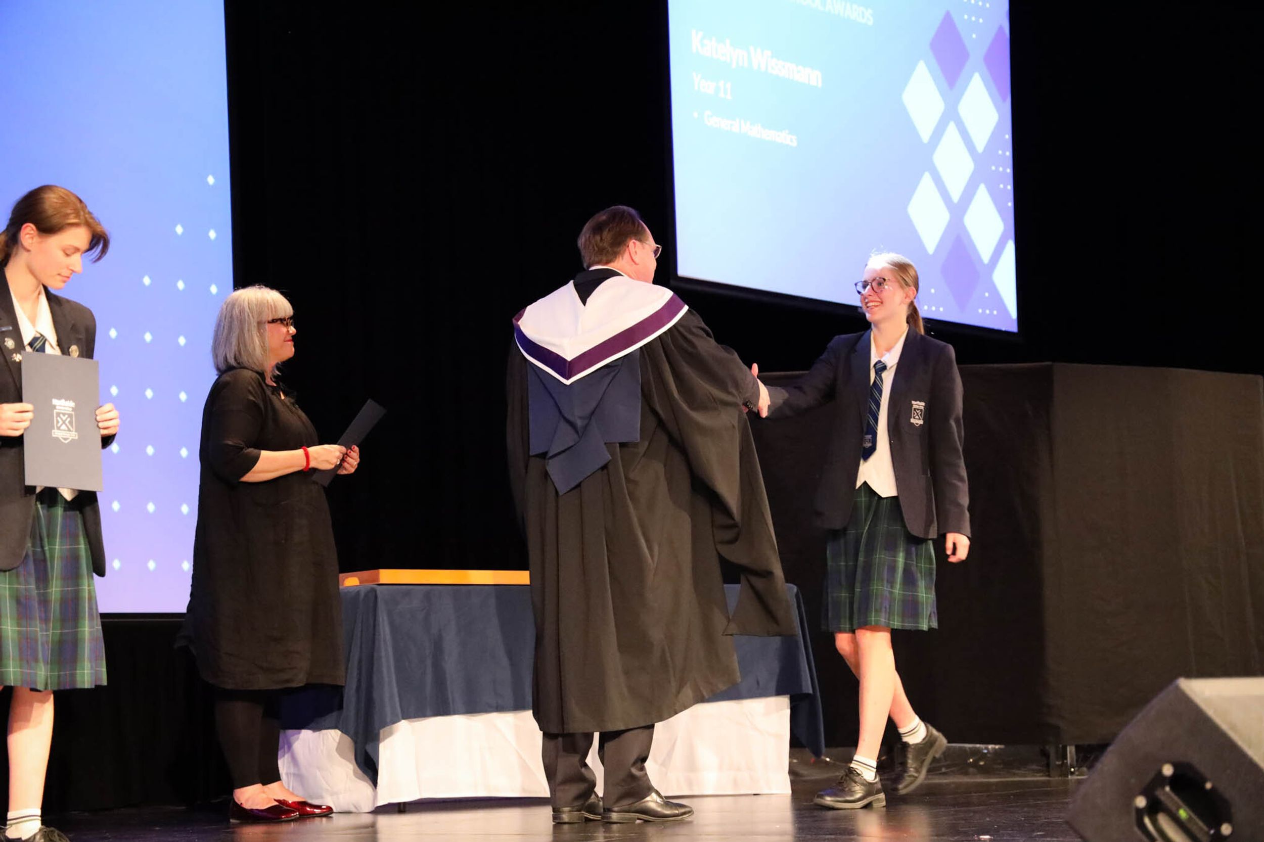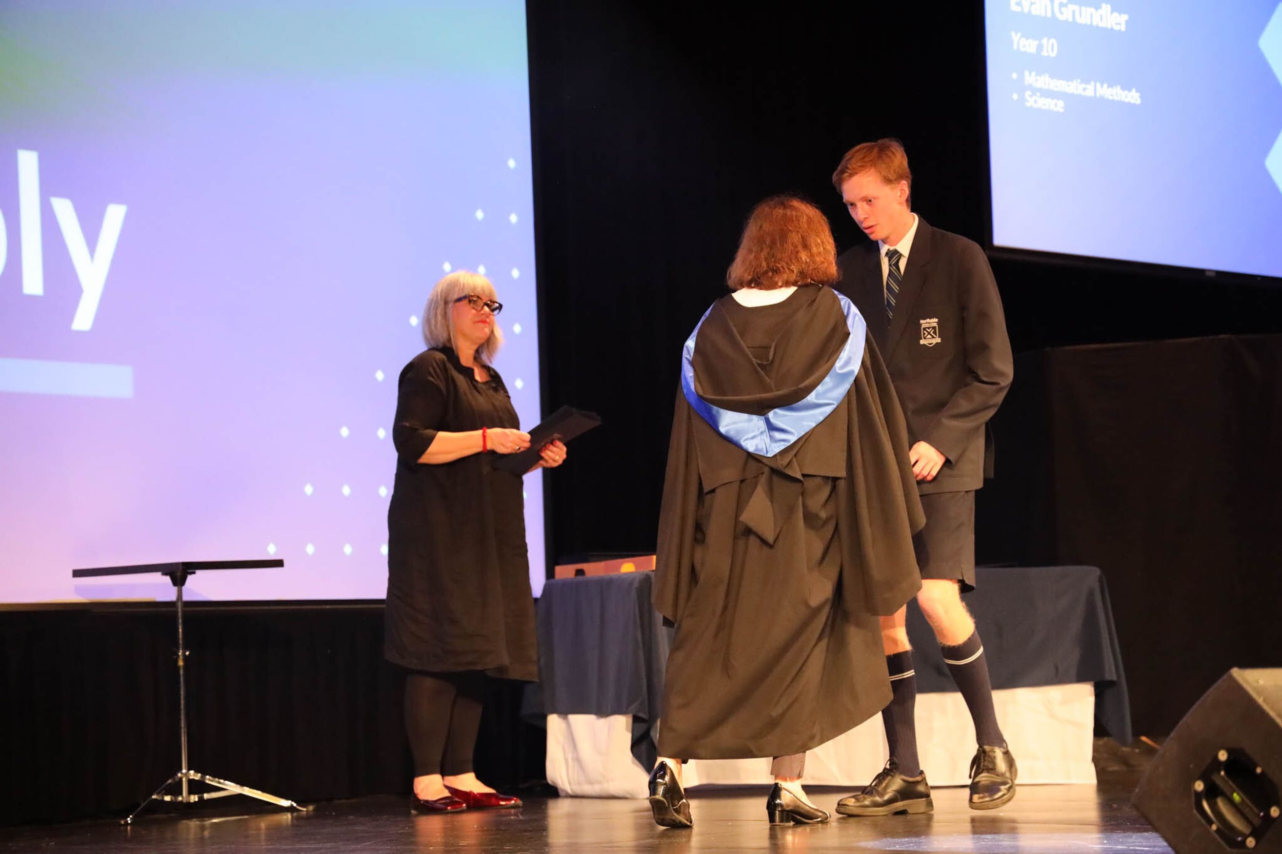 The College Captains thanked the students, staff, and parents for attending the Year 10 & 11 Awards Assembly. Year 9 students were especially welcomed as they attended their first Senior School Assembly. The top three achievers in each subject across years 10 and 11 were celebrated.