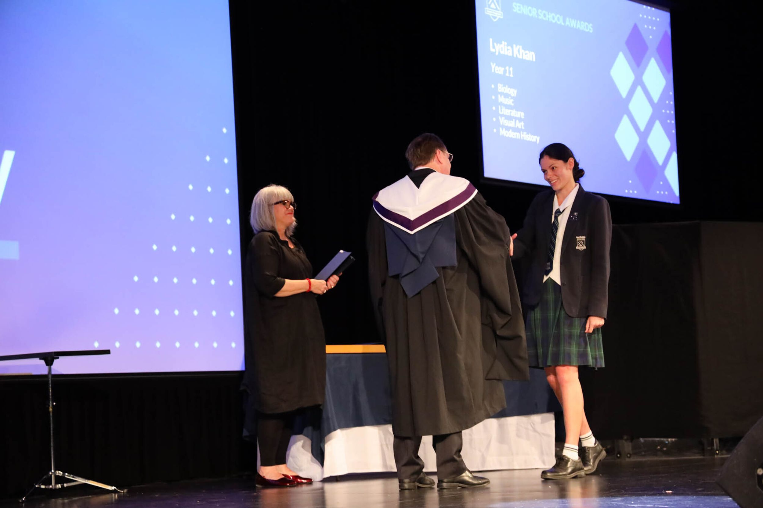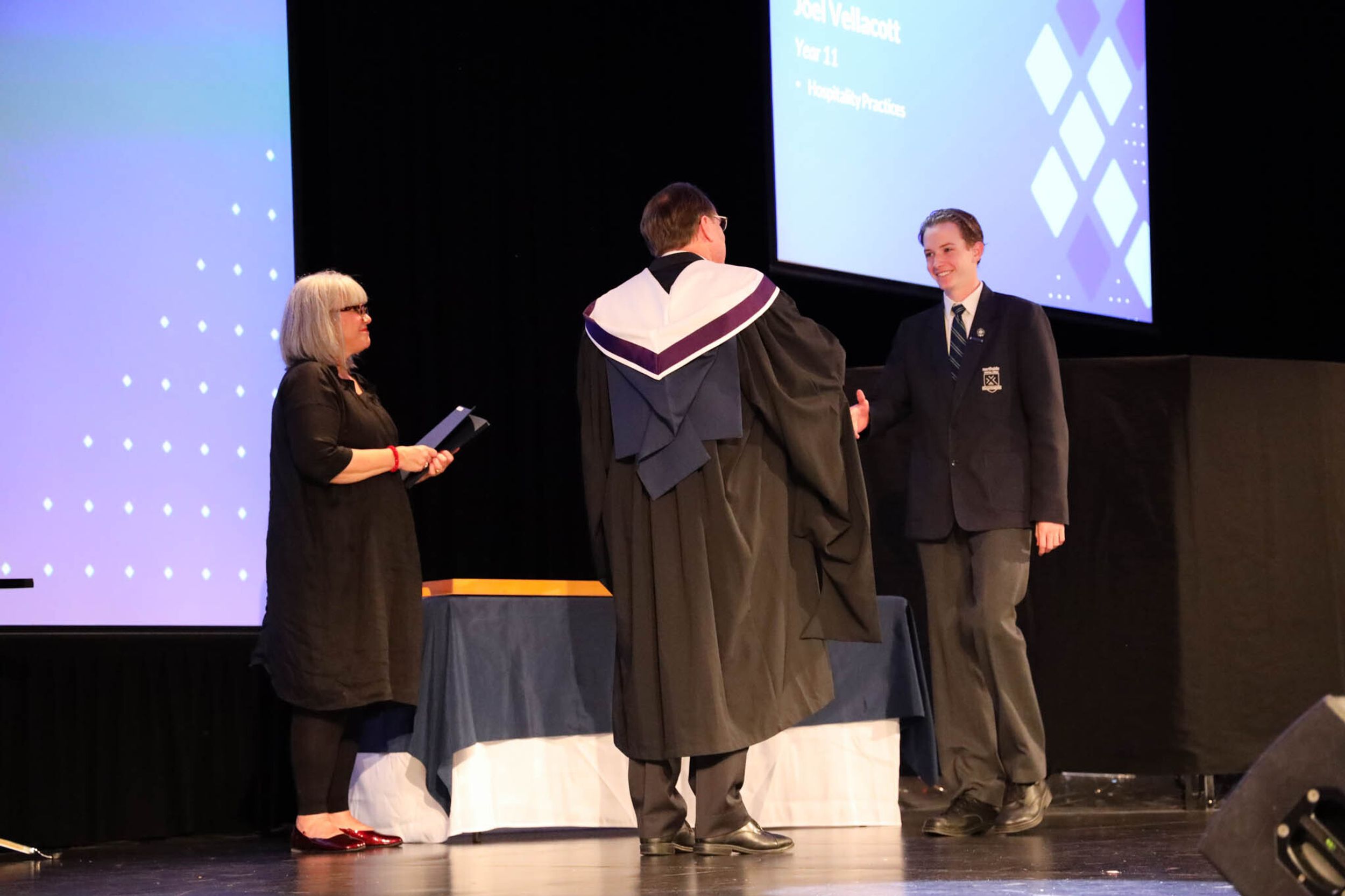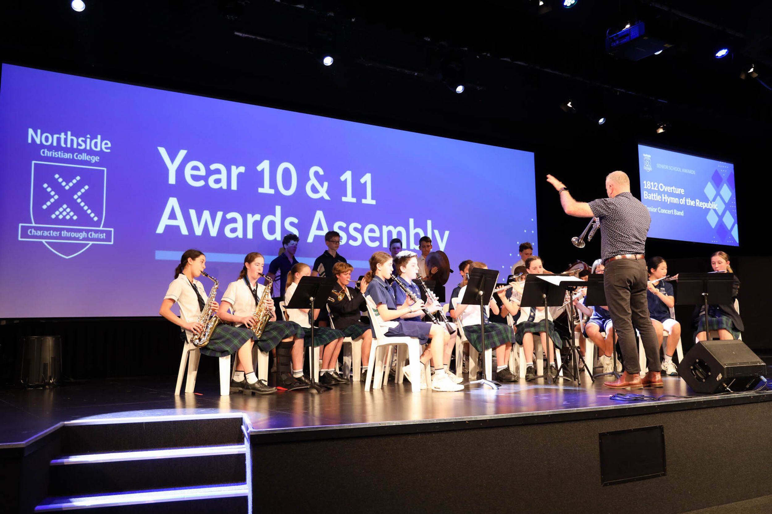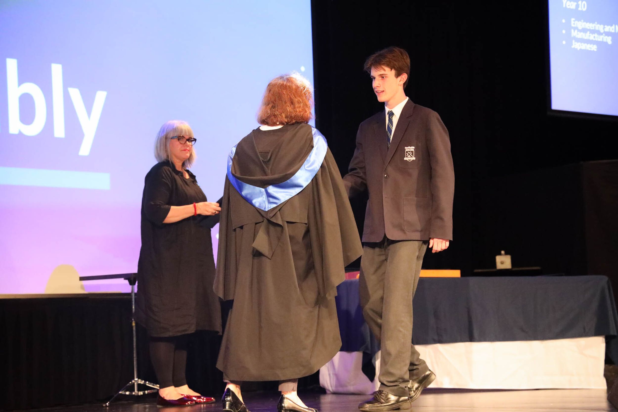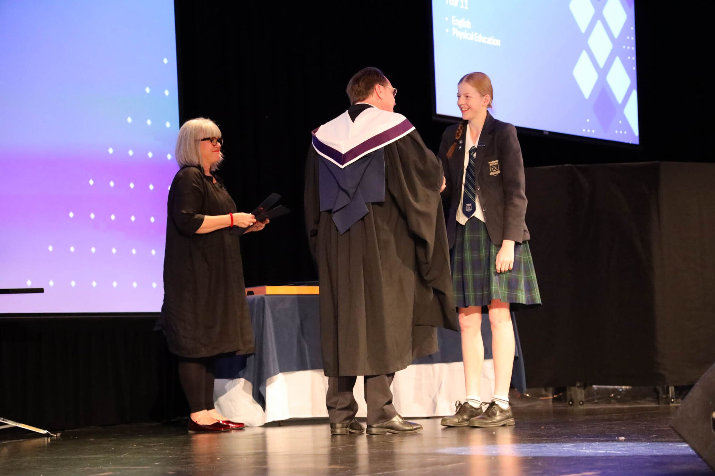 The College Captains thanked the students, staff, and parents for attending the Year 10 & 11 Awards Assembly. Year 9 students were especially welcomed as they attended their first Senior School Assembly. The top three achievers in each subject across years 10 and 11 were celebrated.
