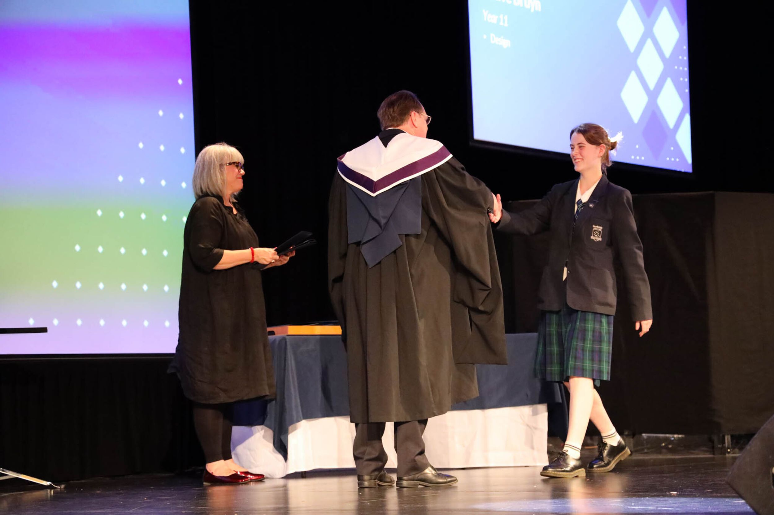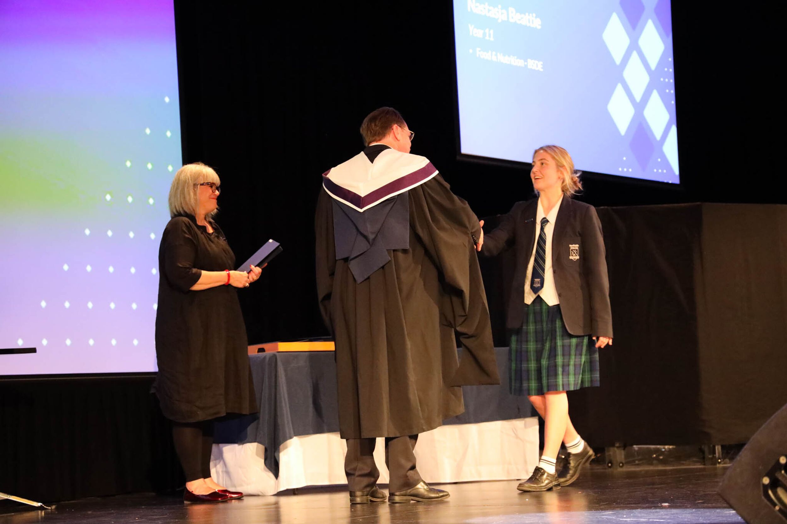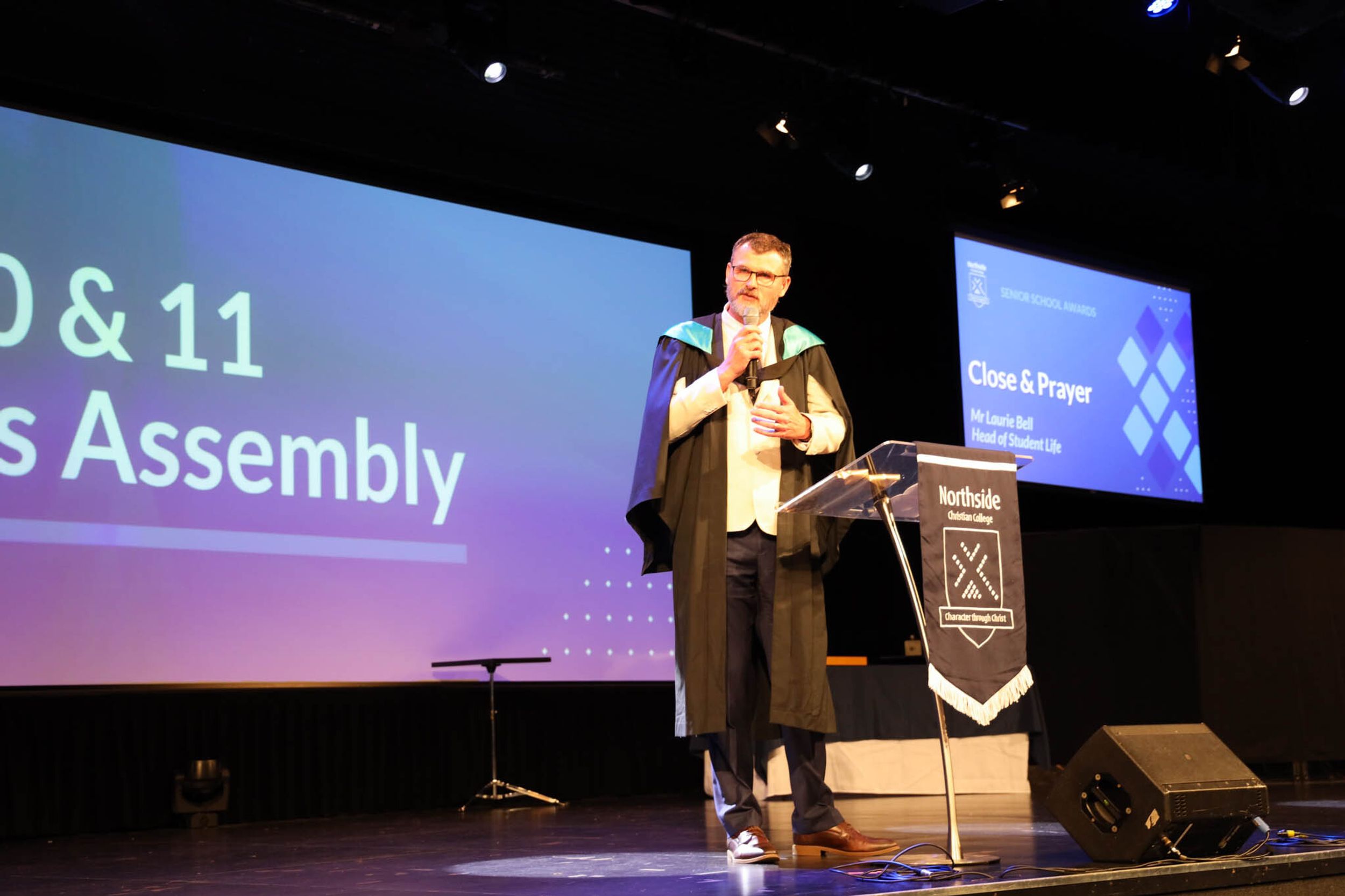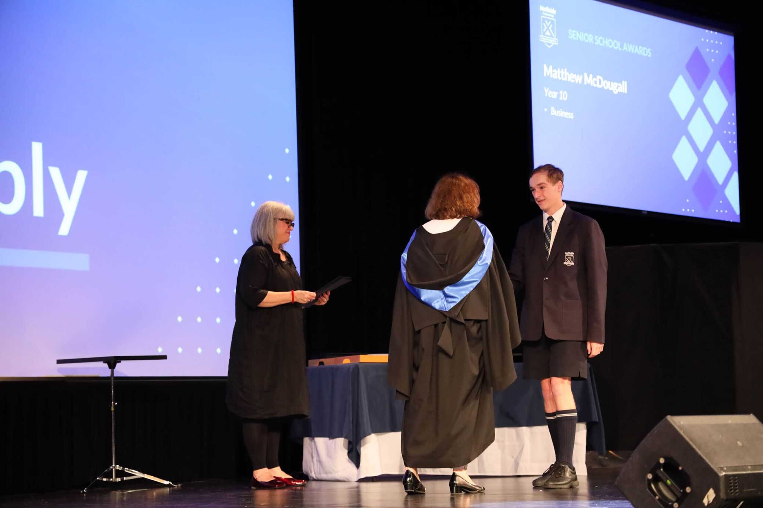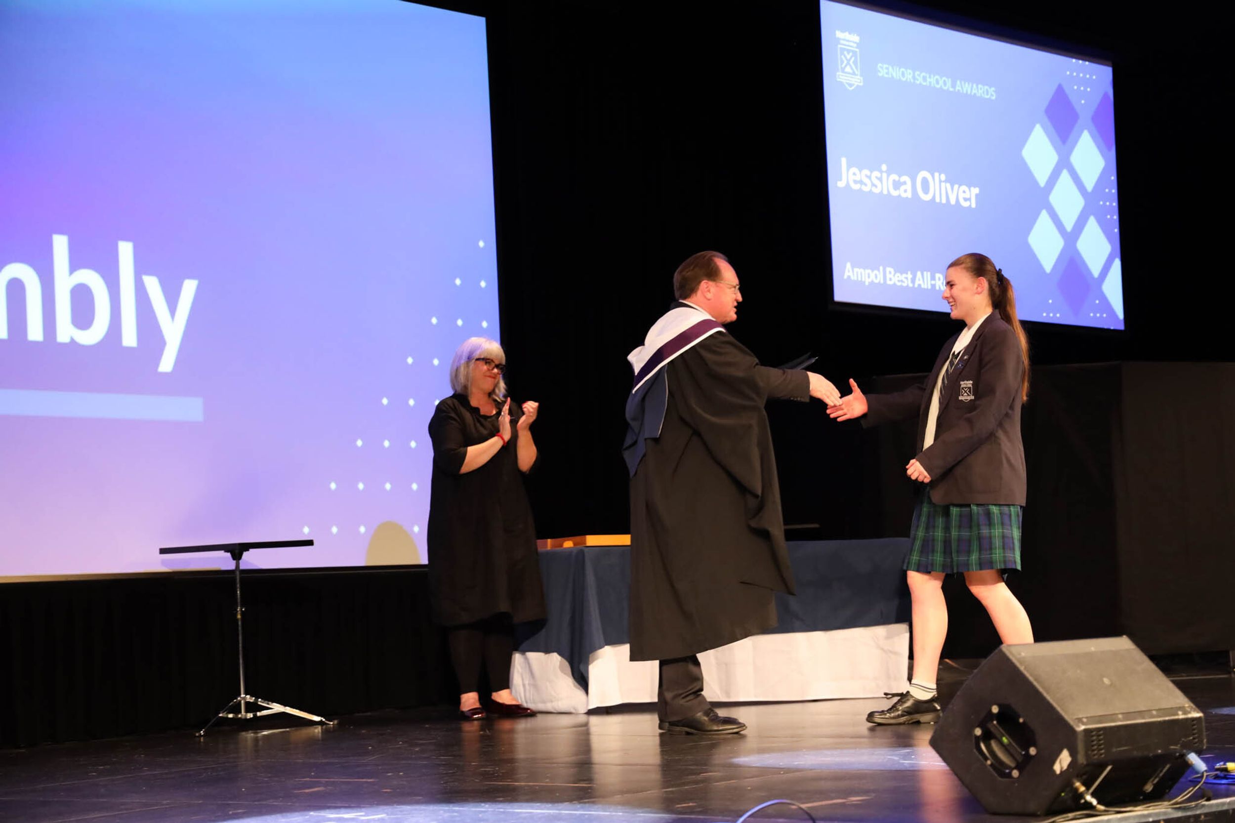 The College Captains thanked the students, staff, and parents for attending the Year 10 & 11 Awards Assembly. Year 9 students were especially welcomed as they attended their first Senior School Assembly. The top three achievers in each subject across years 10 and 11 were celebrated.
