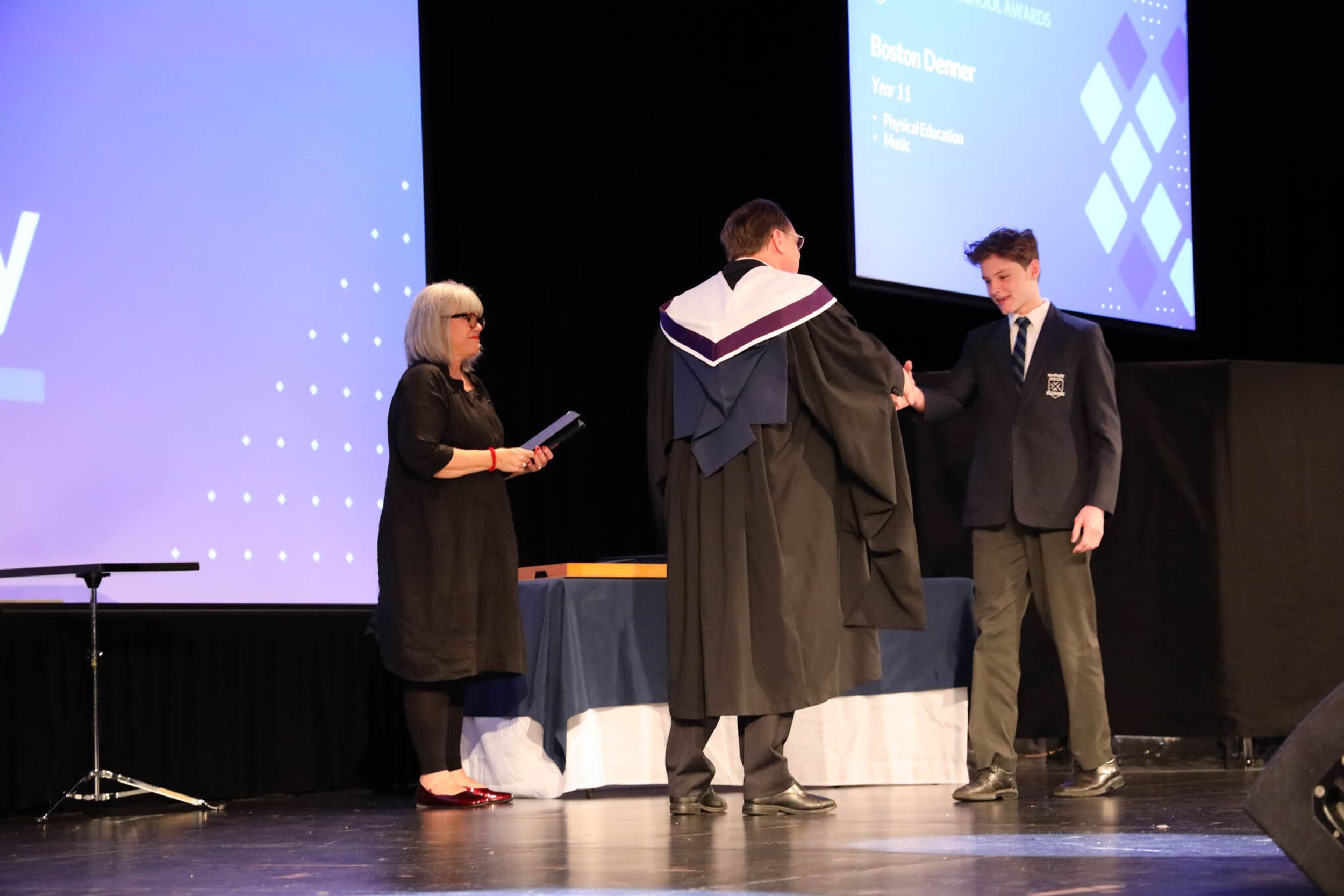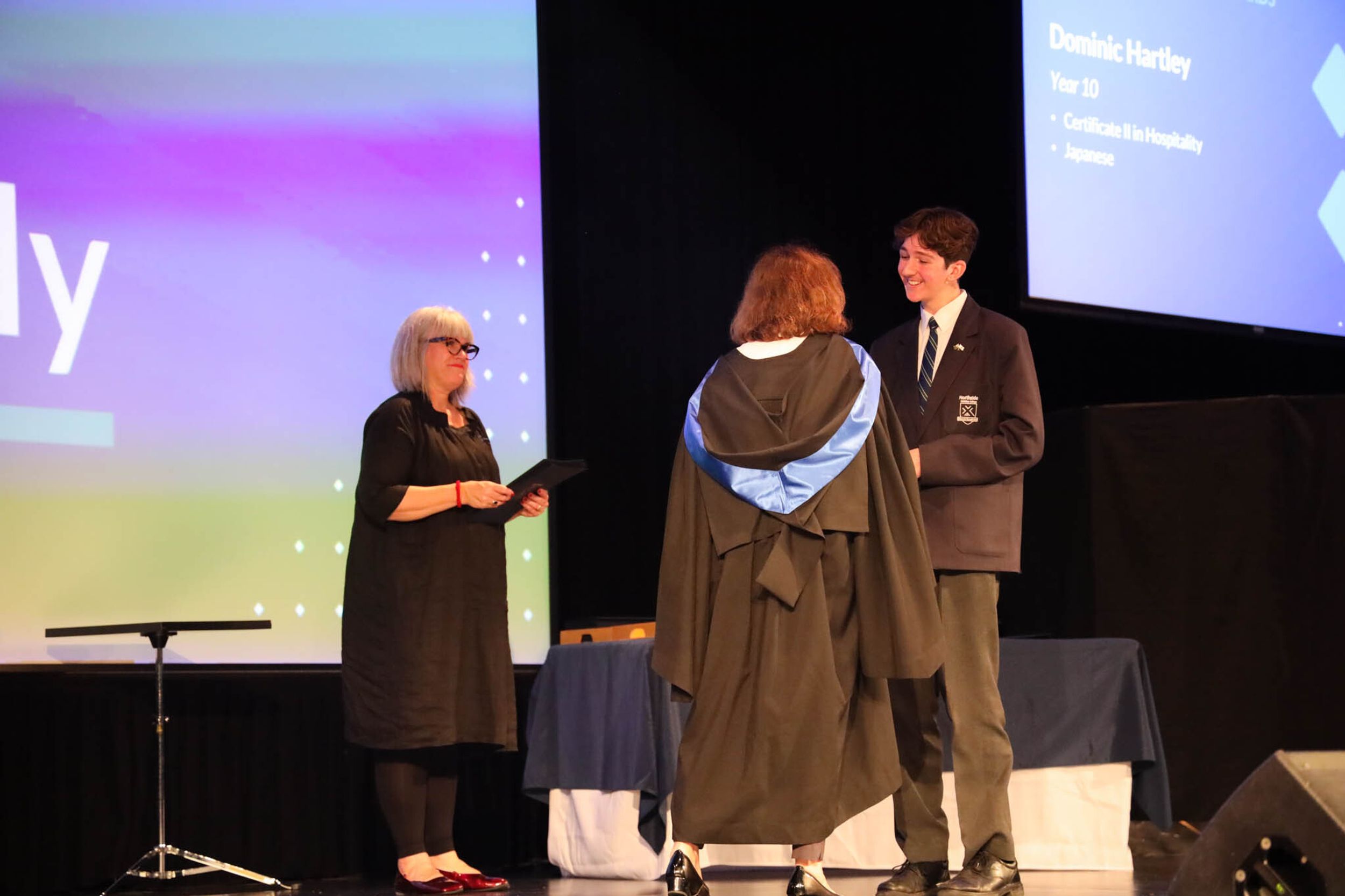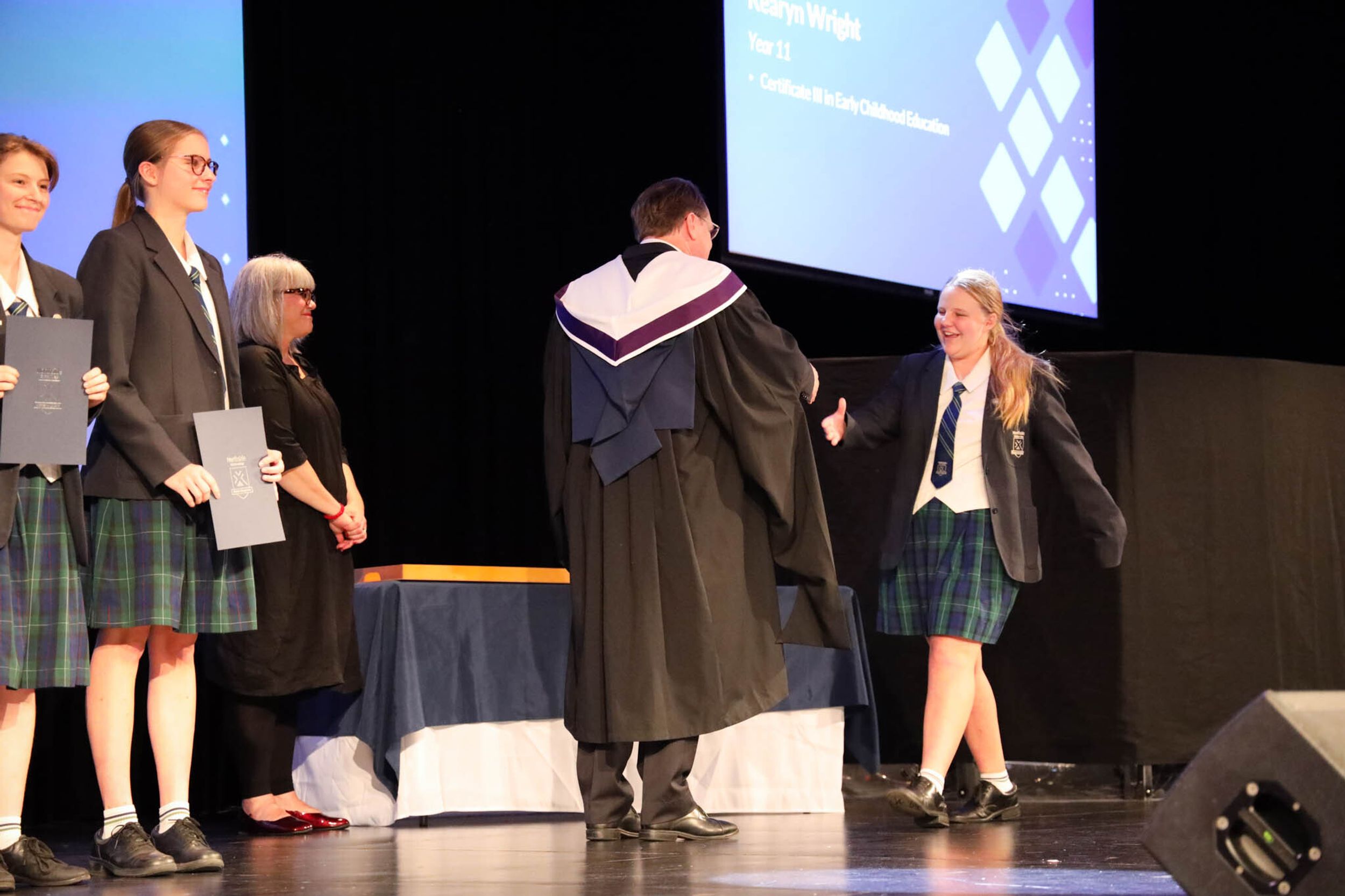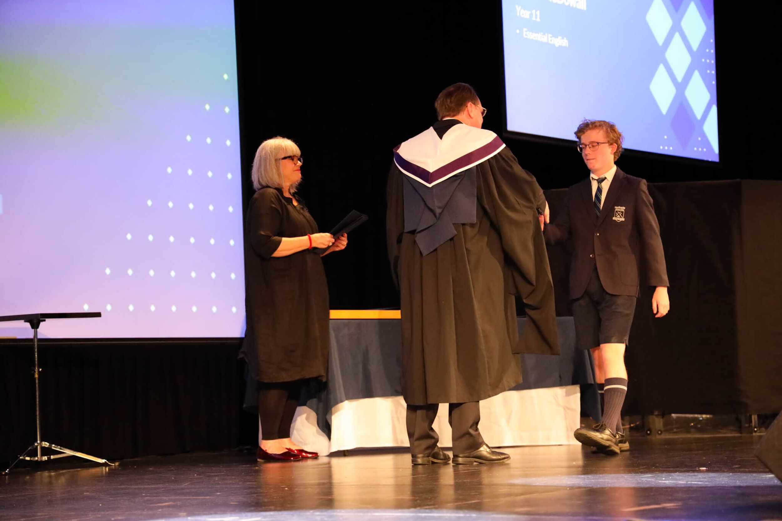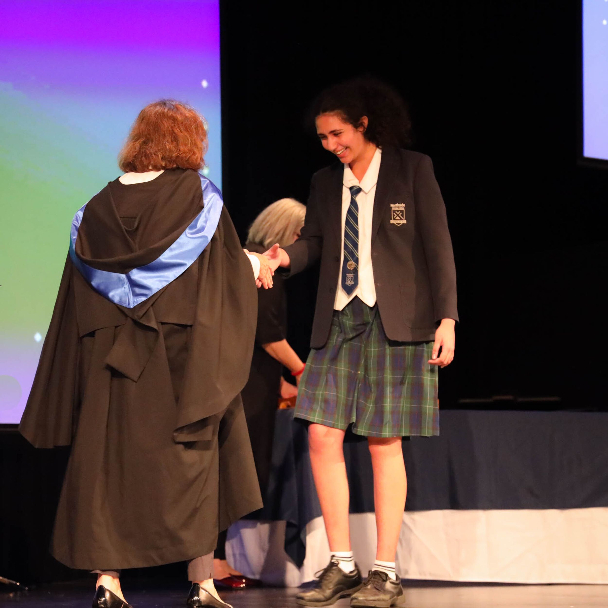 The College Captains thanked the students, staff, and parents for attending the Year 10 & 11 Awards Assembly. Year 9 students were especially welcomed as they attended their first Senior School Assembly. The top three achievers in each subject across years 10 and 11 were celebrated.
