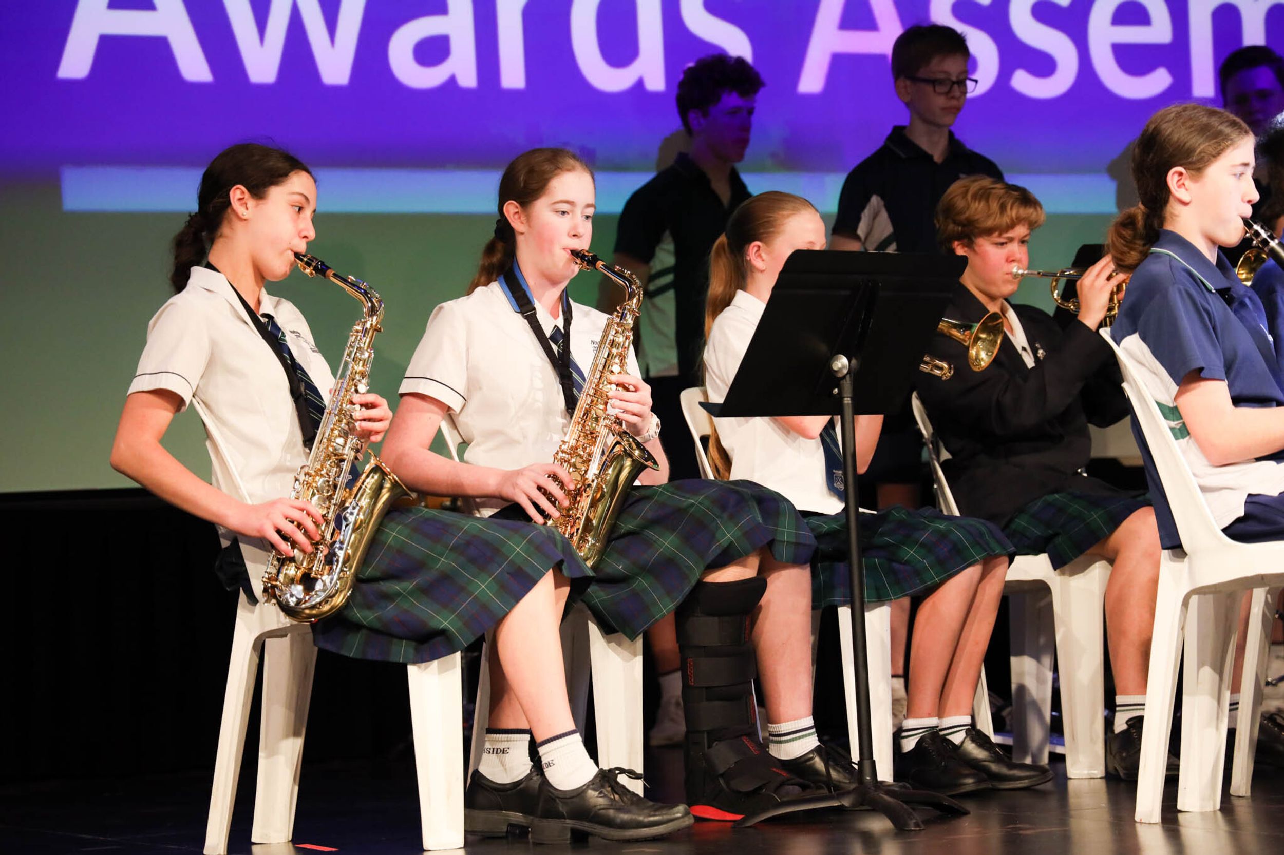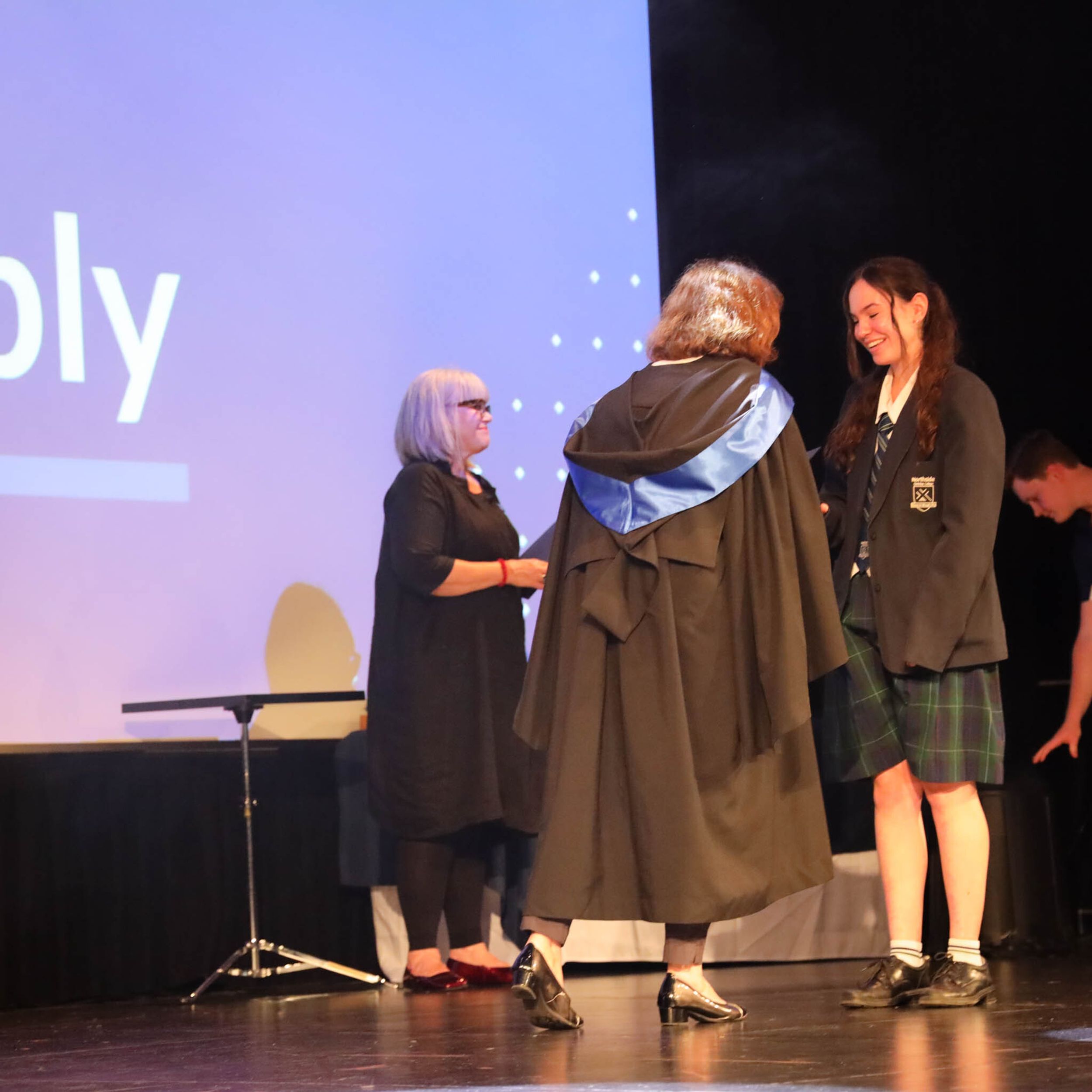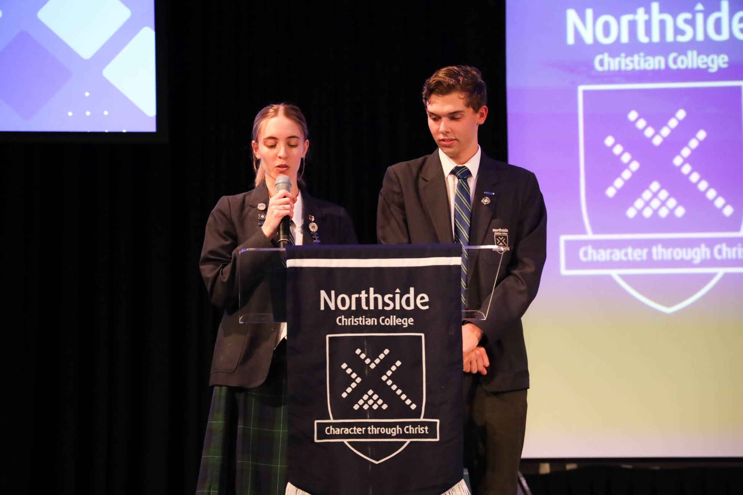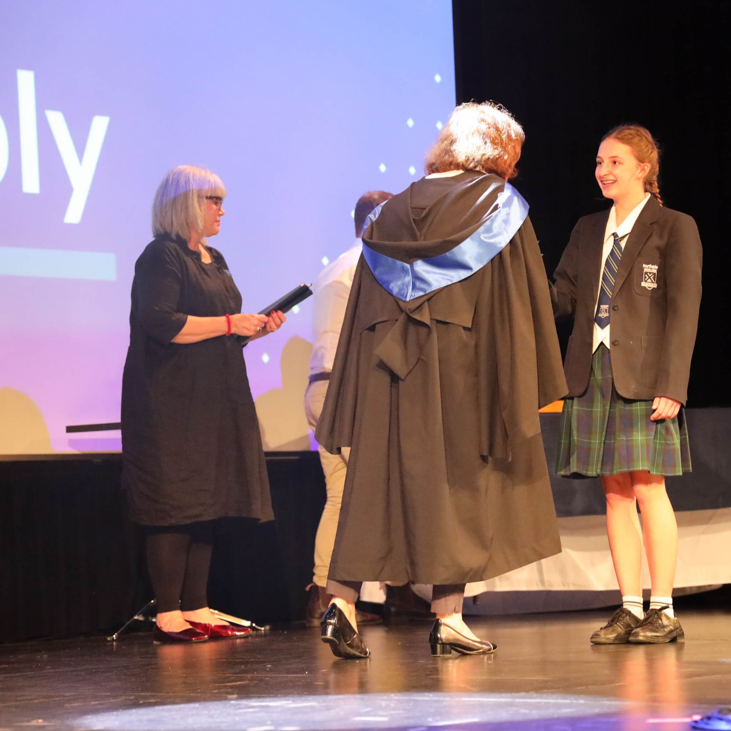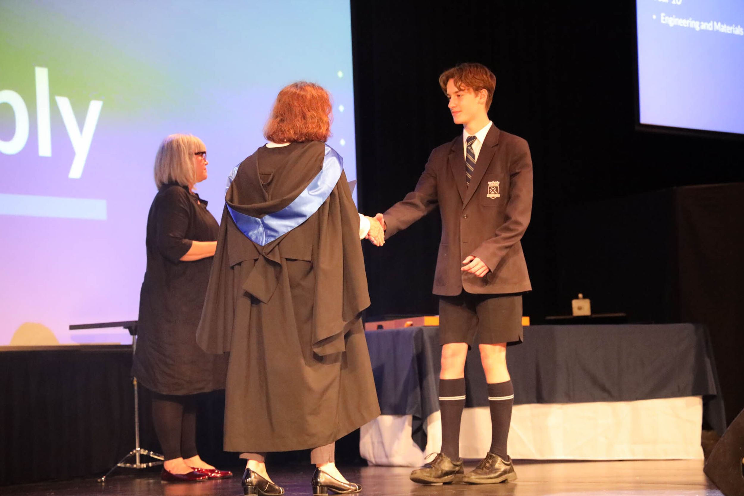 The College Captains thanked the students, staff, and parents for attending the Year 10 & 11 Awards Assembly. Year 9 students were especially welcomed as they attended their first Senior School Assembly. The top three achievers in each subject across years 10 and 11 were celebrated.