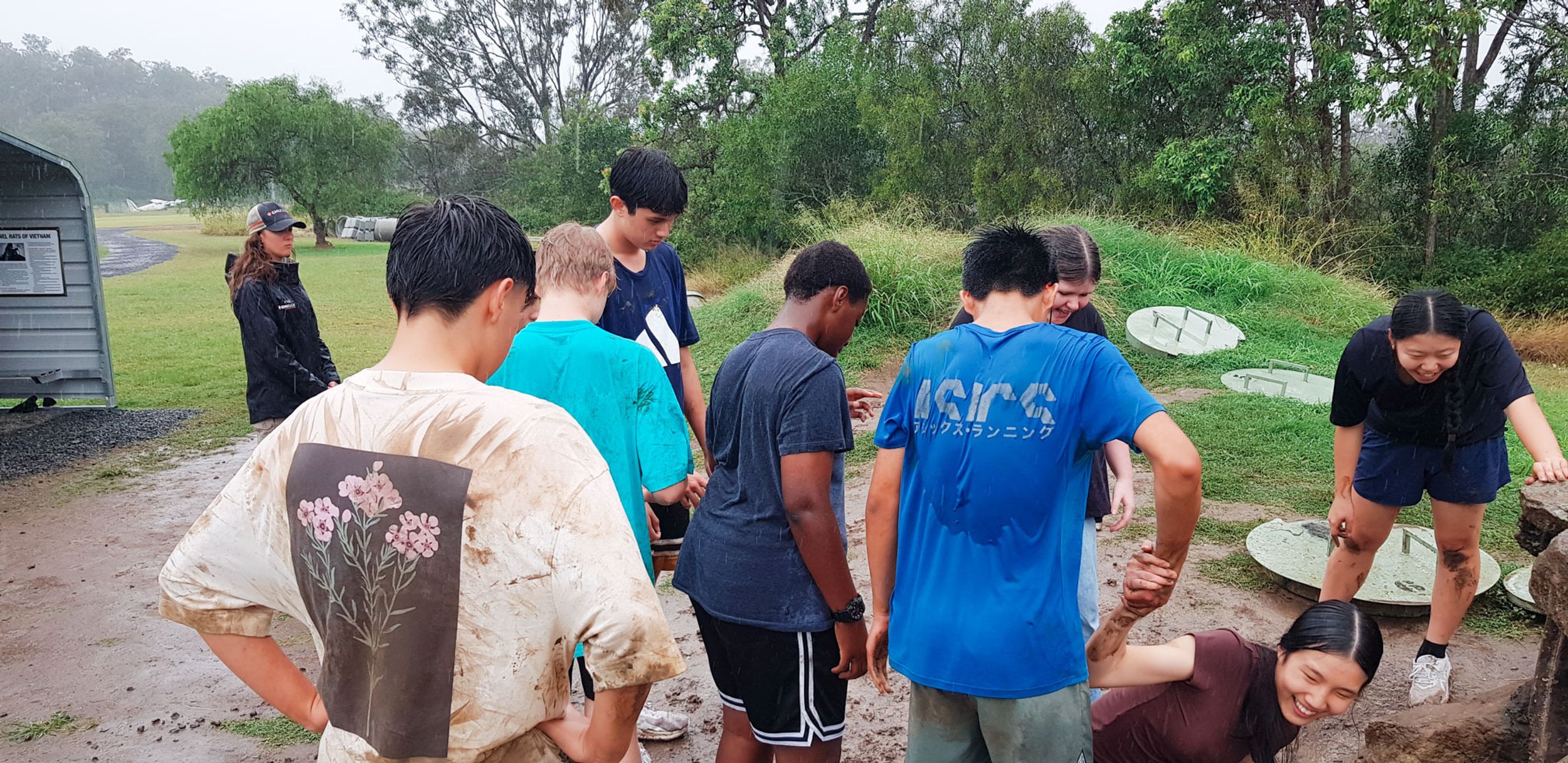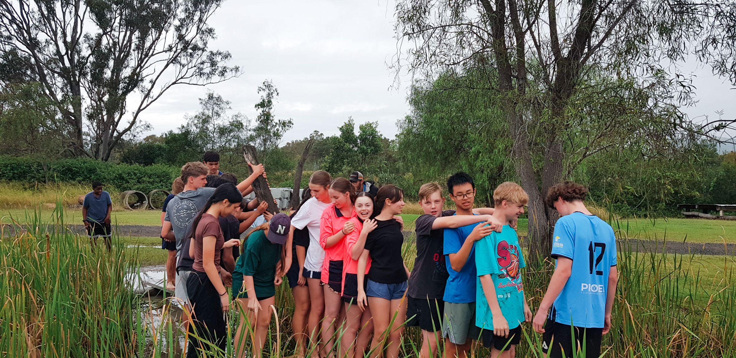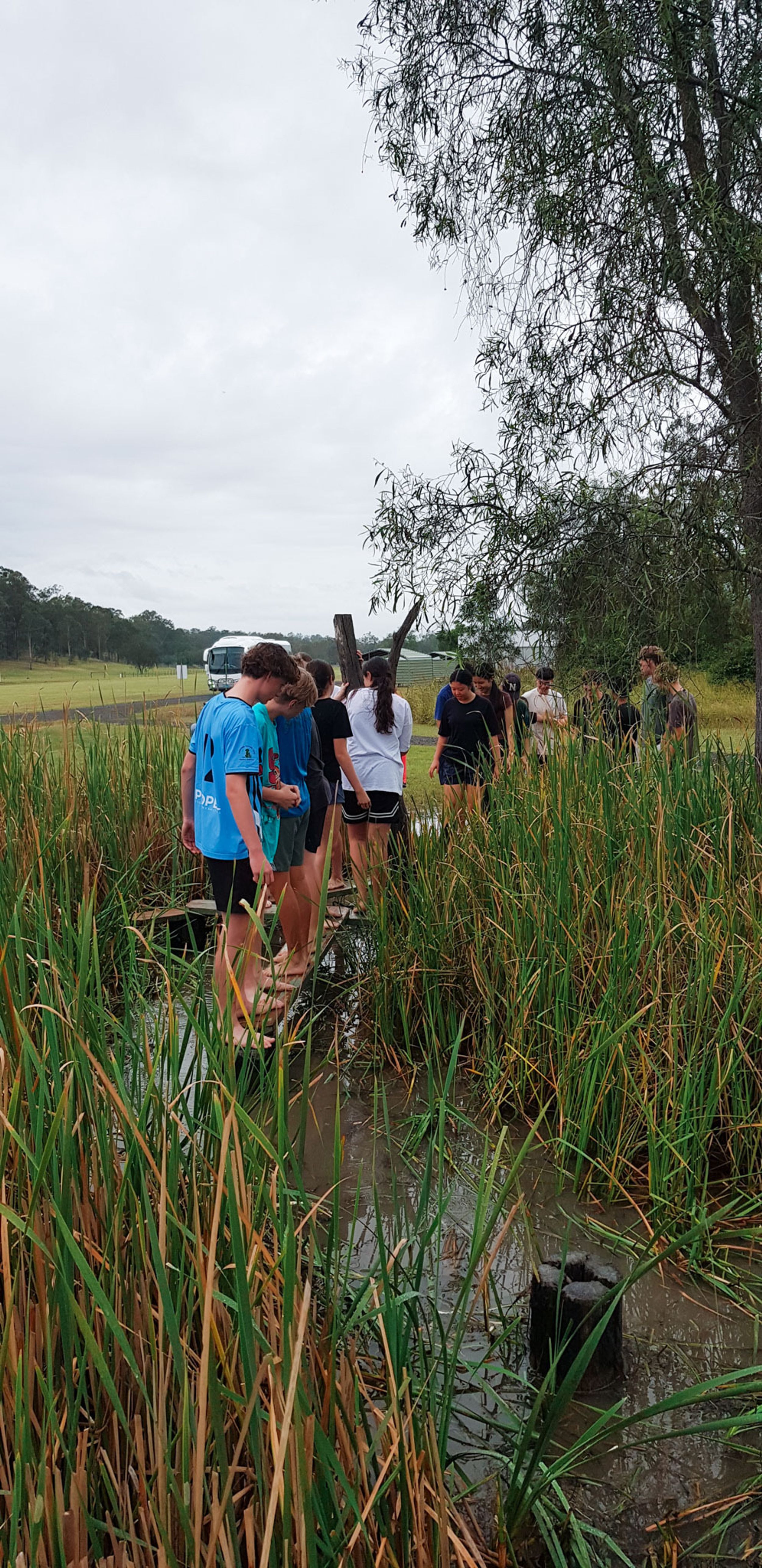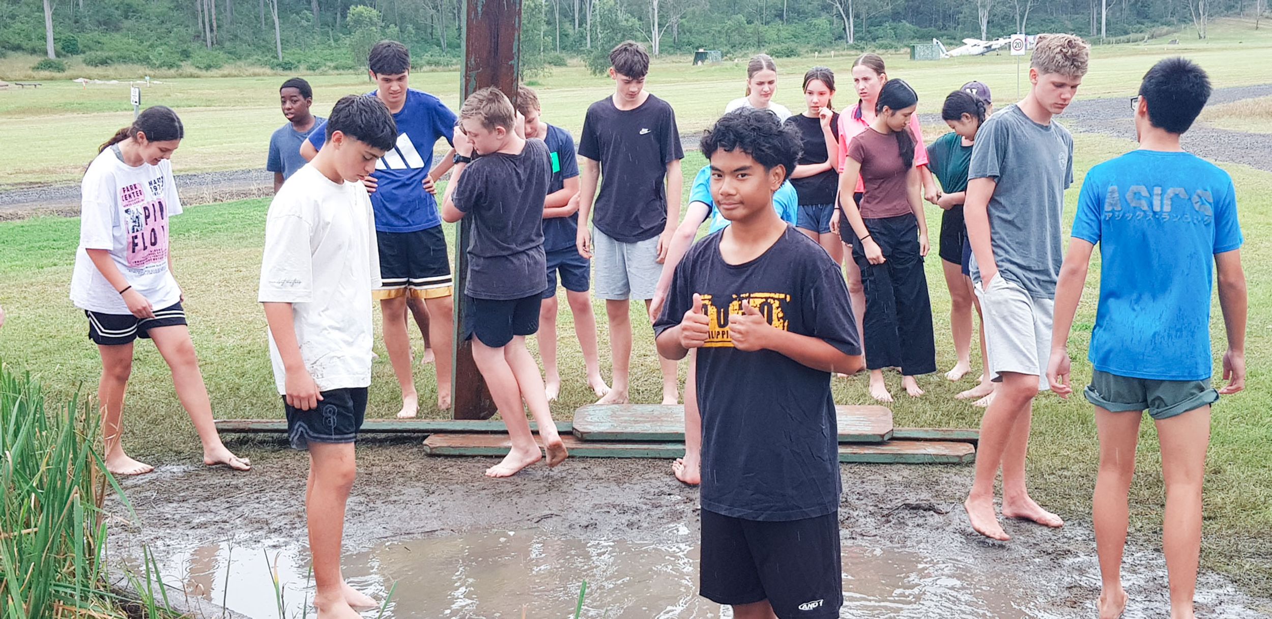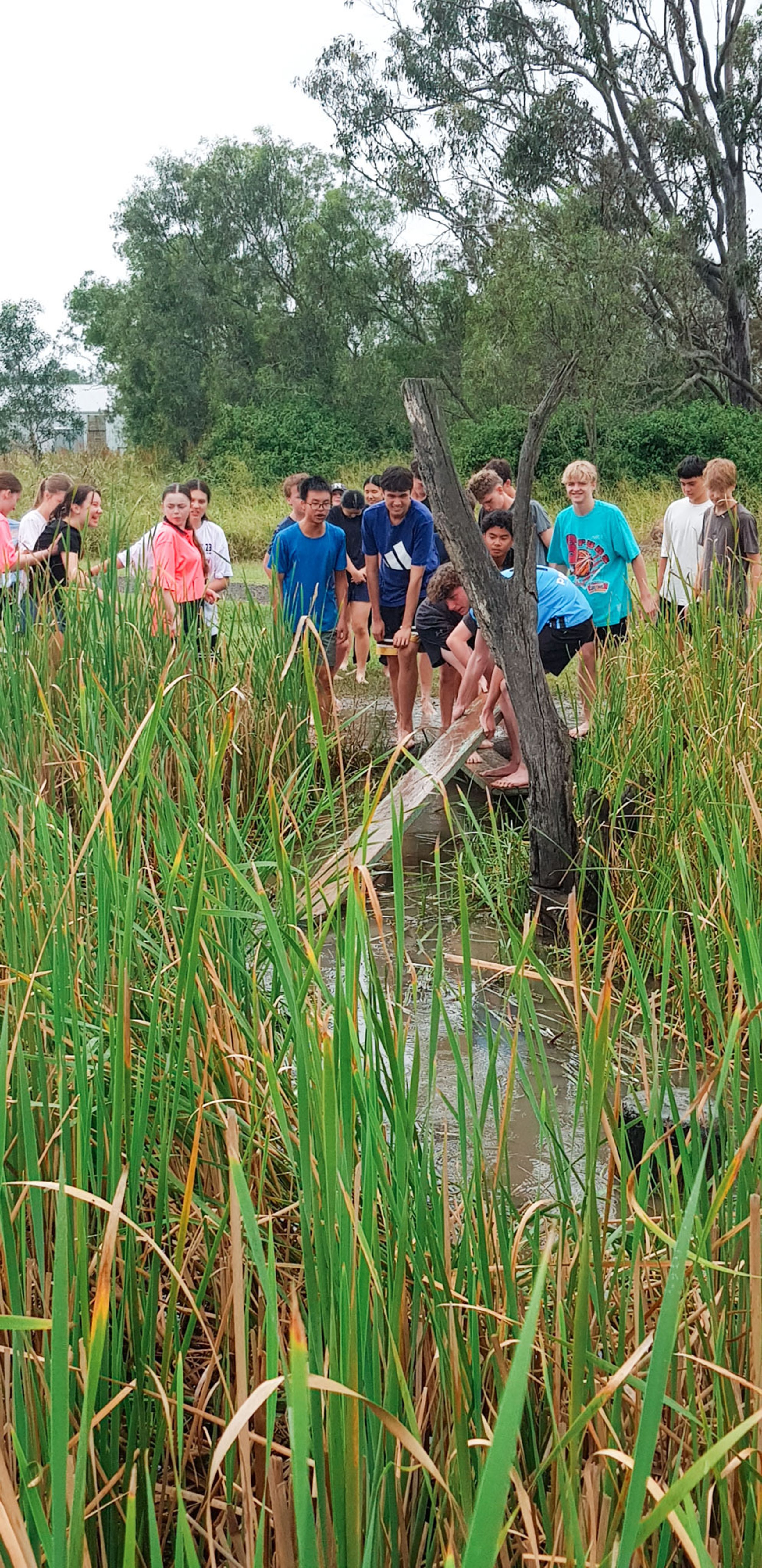 The wet and cool weather of the 30th of May would have deterred most from heading outdoors, but that didn’t stop the Year 9 students who headed to Emu Gully Adventure Education (Helidon) for the day. In conjunction with their HASS studies of World War One, the students attempted various team-building challenges linked to different wartime experiences. Maneuvering “tanks”, tunnelling under enemy trenches and crossing the treacherous “Western Front” were all enthusiastically pursued. Throngs of muddy students proved that few let the wet weather stop their progress.