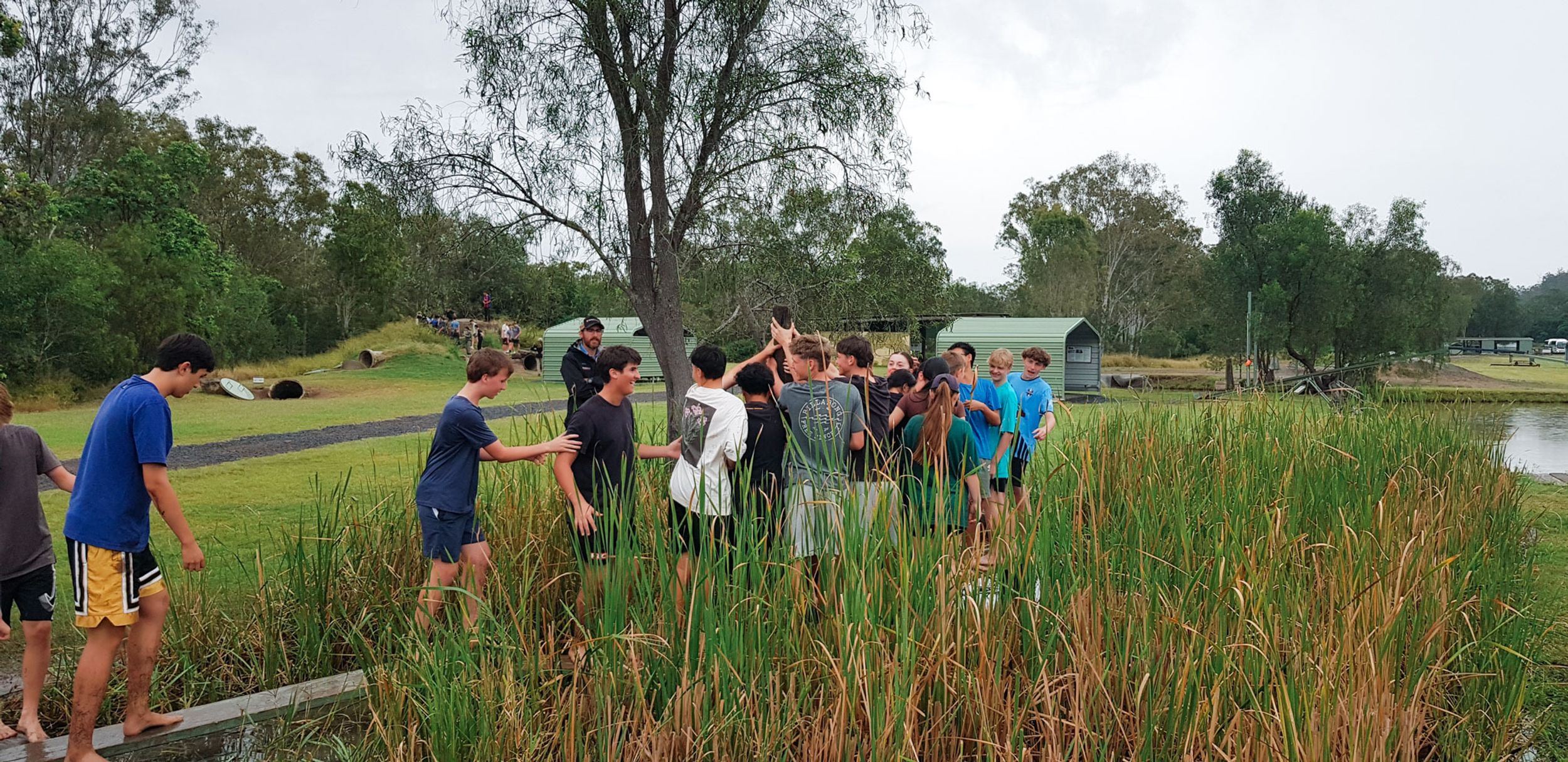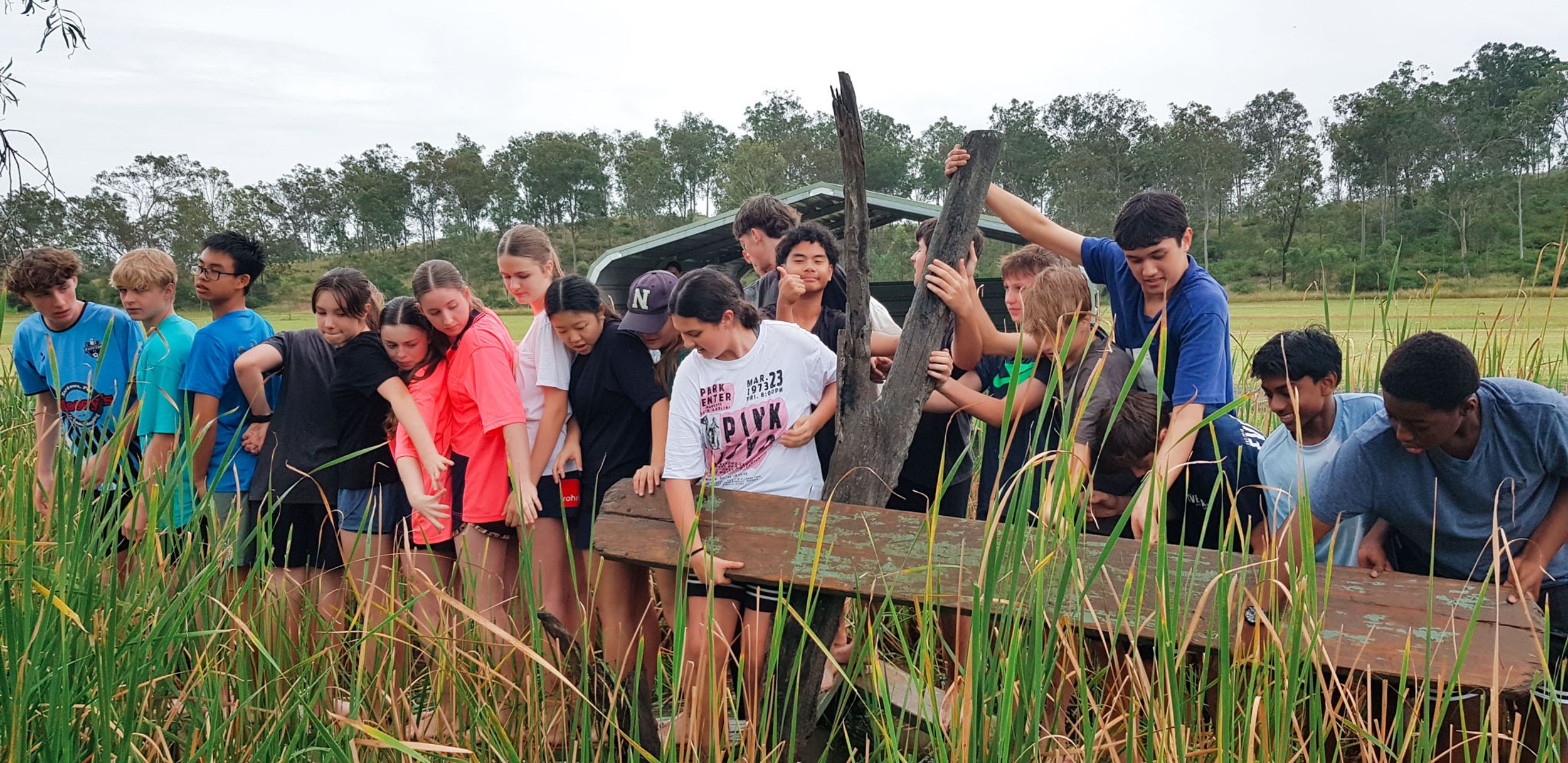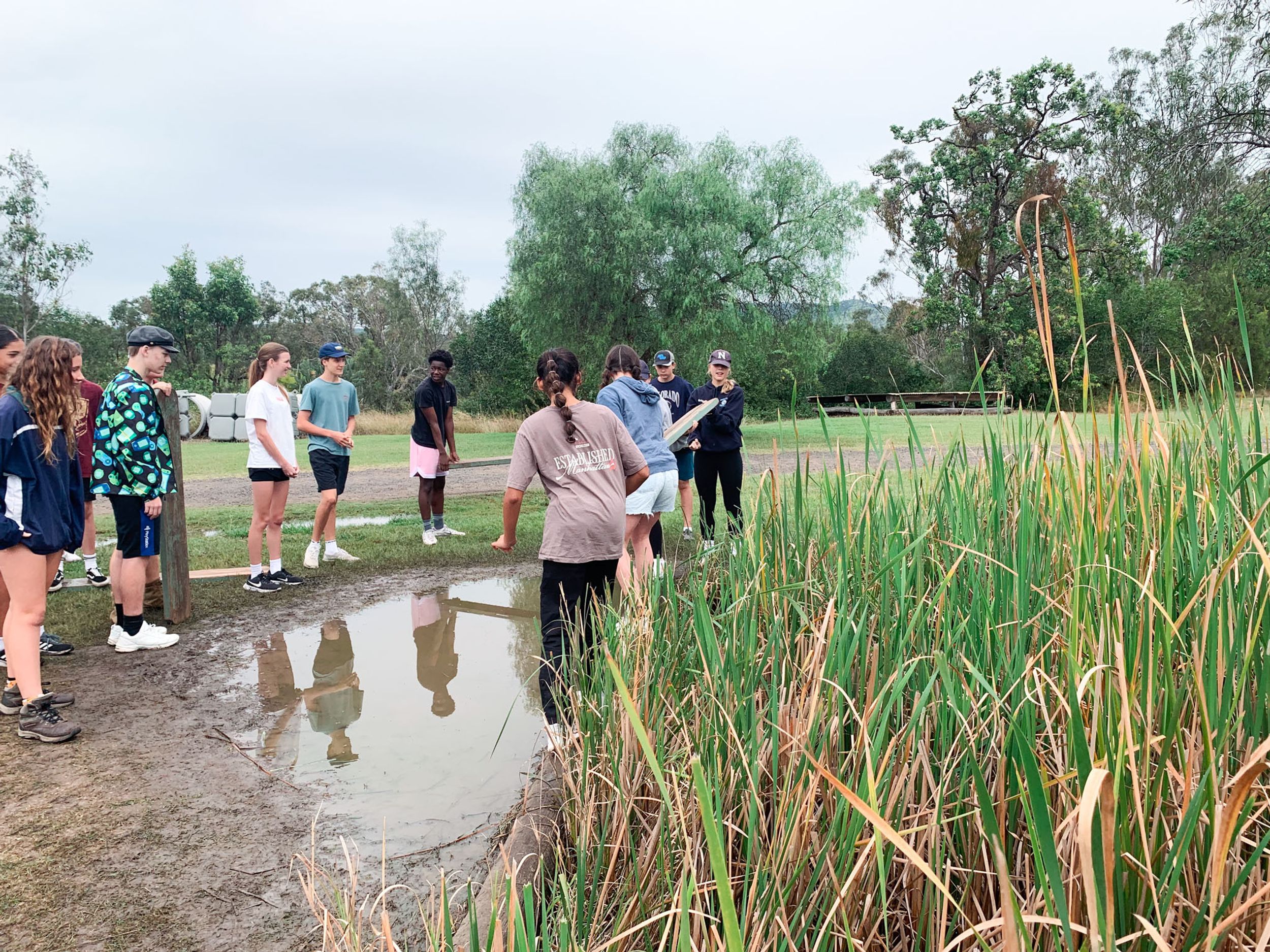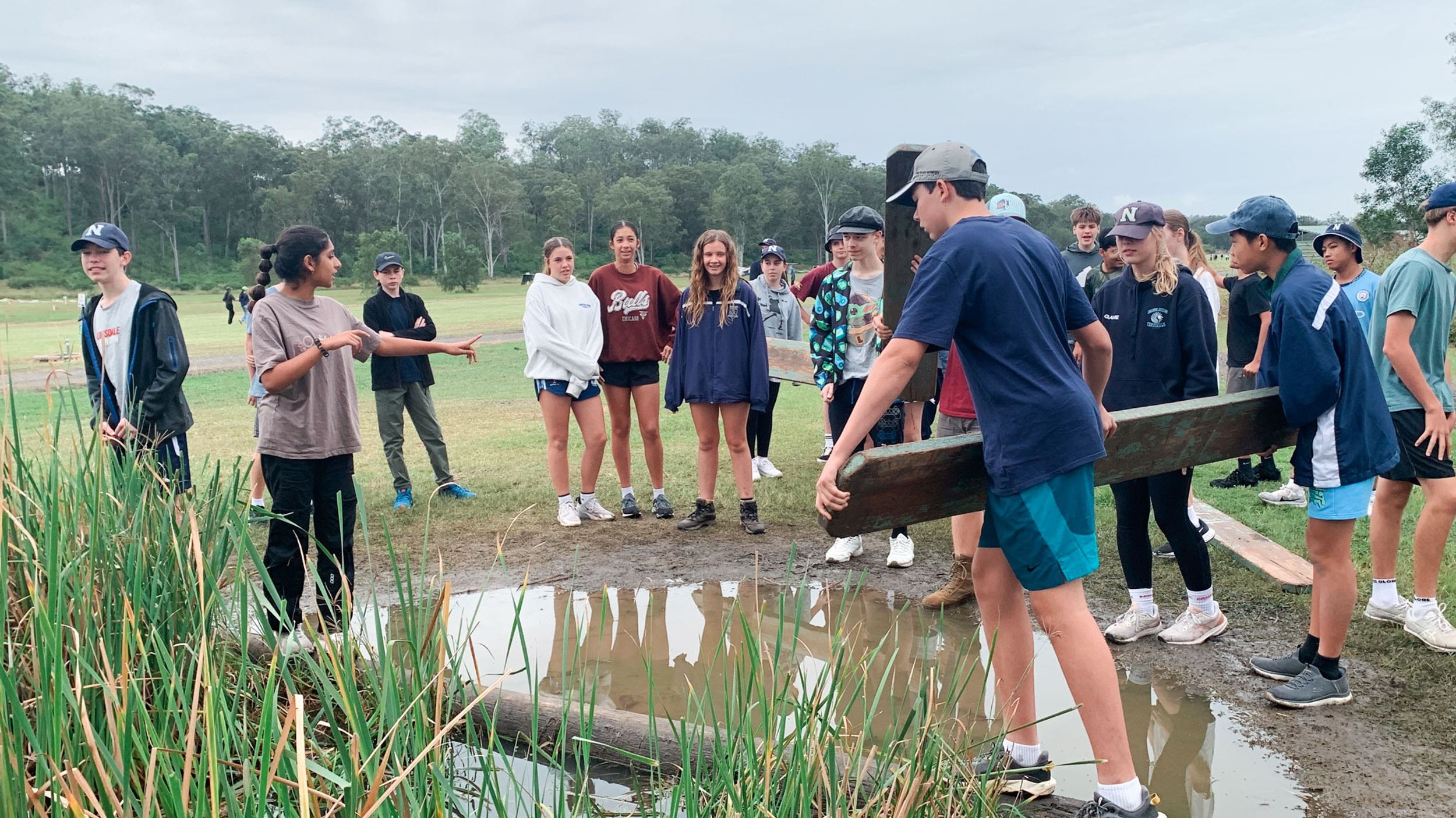 The wet and cool weather of the 30th of May would have deterred most from heading outdoors, but that didn’t stop the Year 9 students who headed to Emu Gully Adventure Education (Helidon) for the day. In conjunction with their HASS studies of World War One, the students attempted various team-building challenges linked to different wartime experiences. Maneuvering “tanks”, tunnelling under enemy trenches and crossing the treacherous “Western Front” were all enthusiastically pursued. Throngs of muddy students proved that few let the wet weather stop their progress.