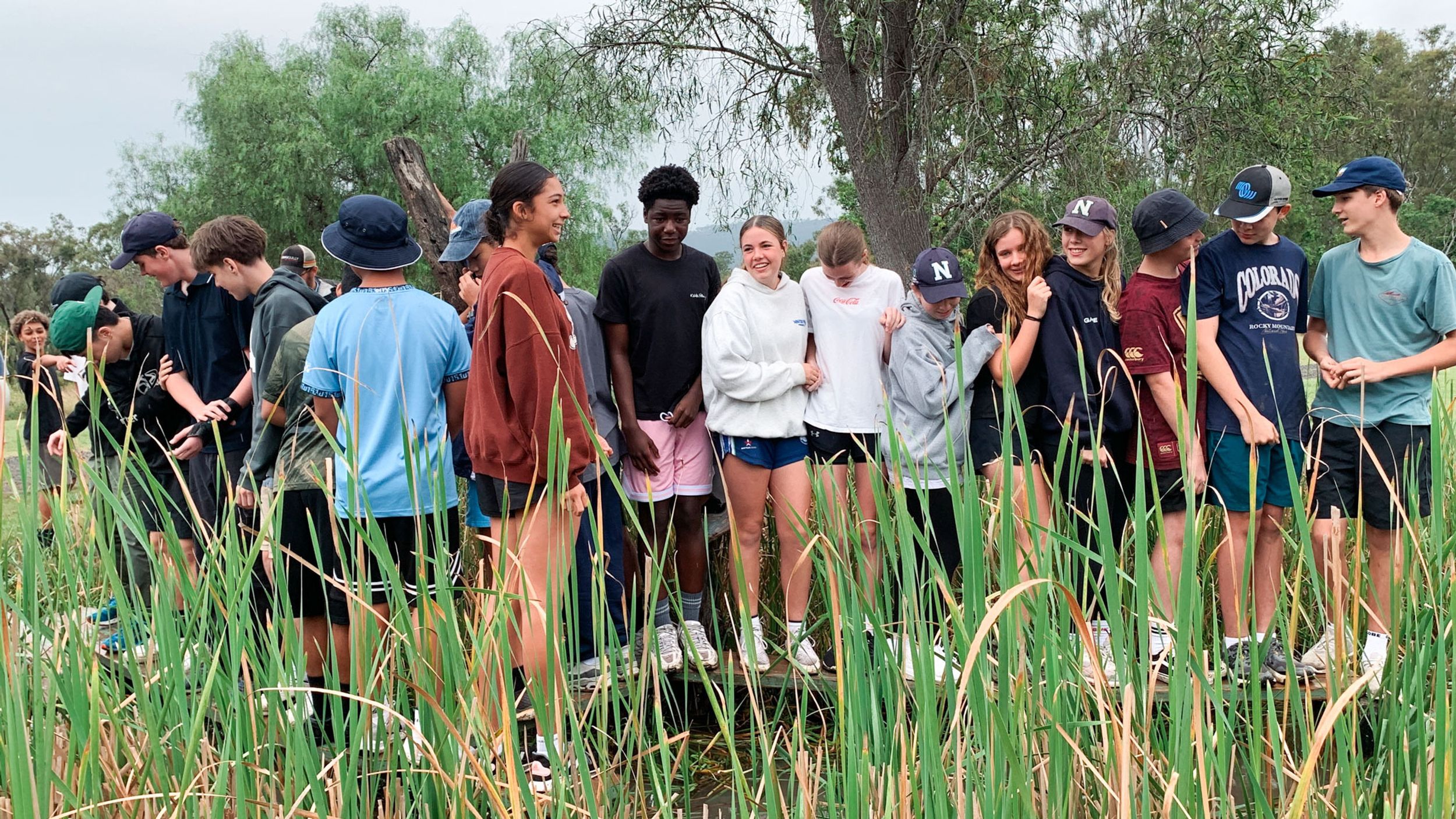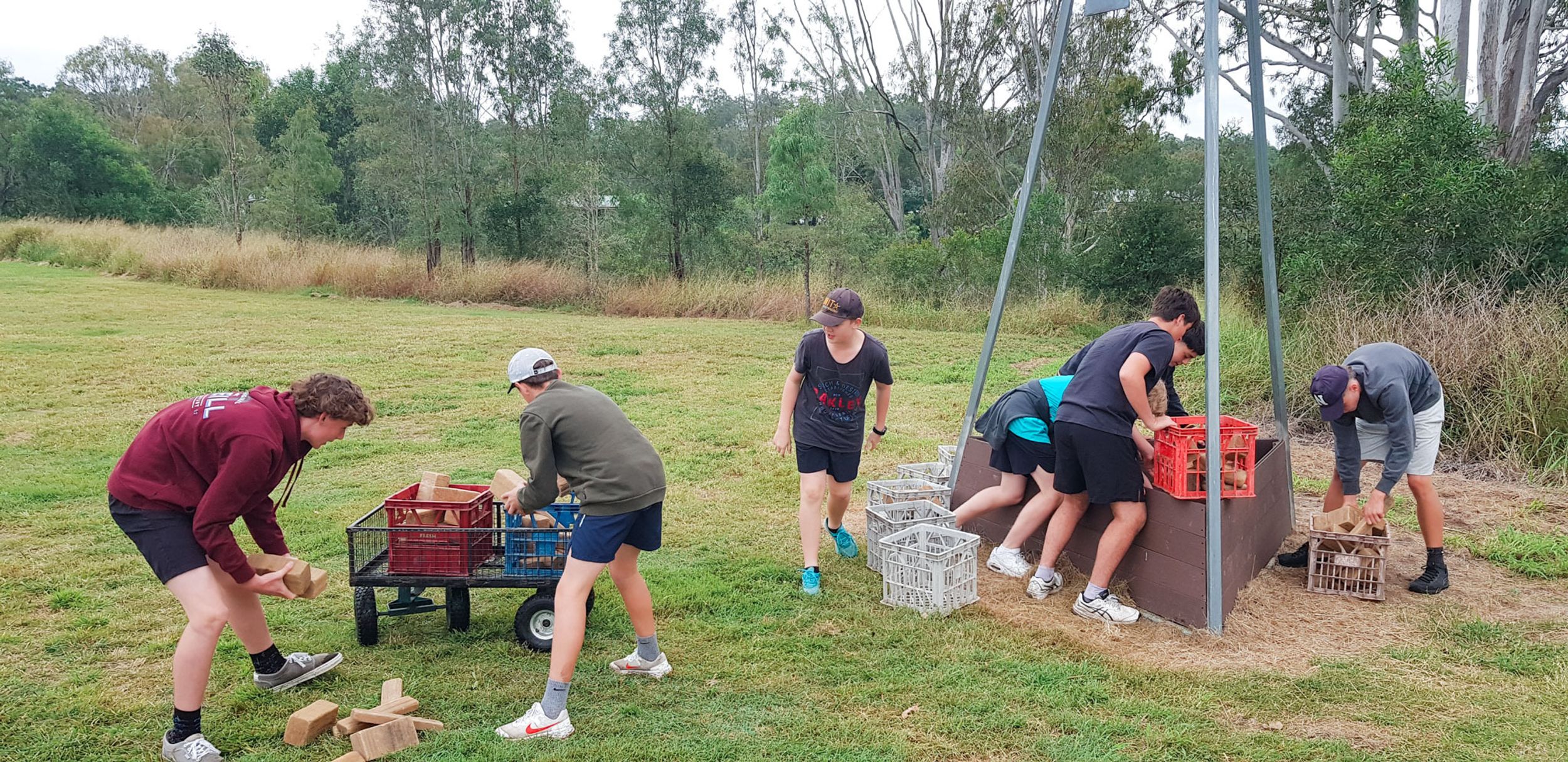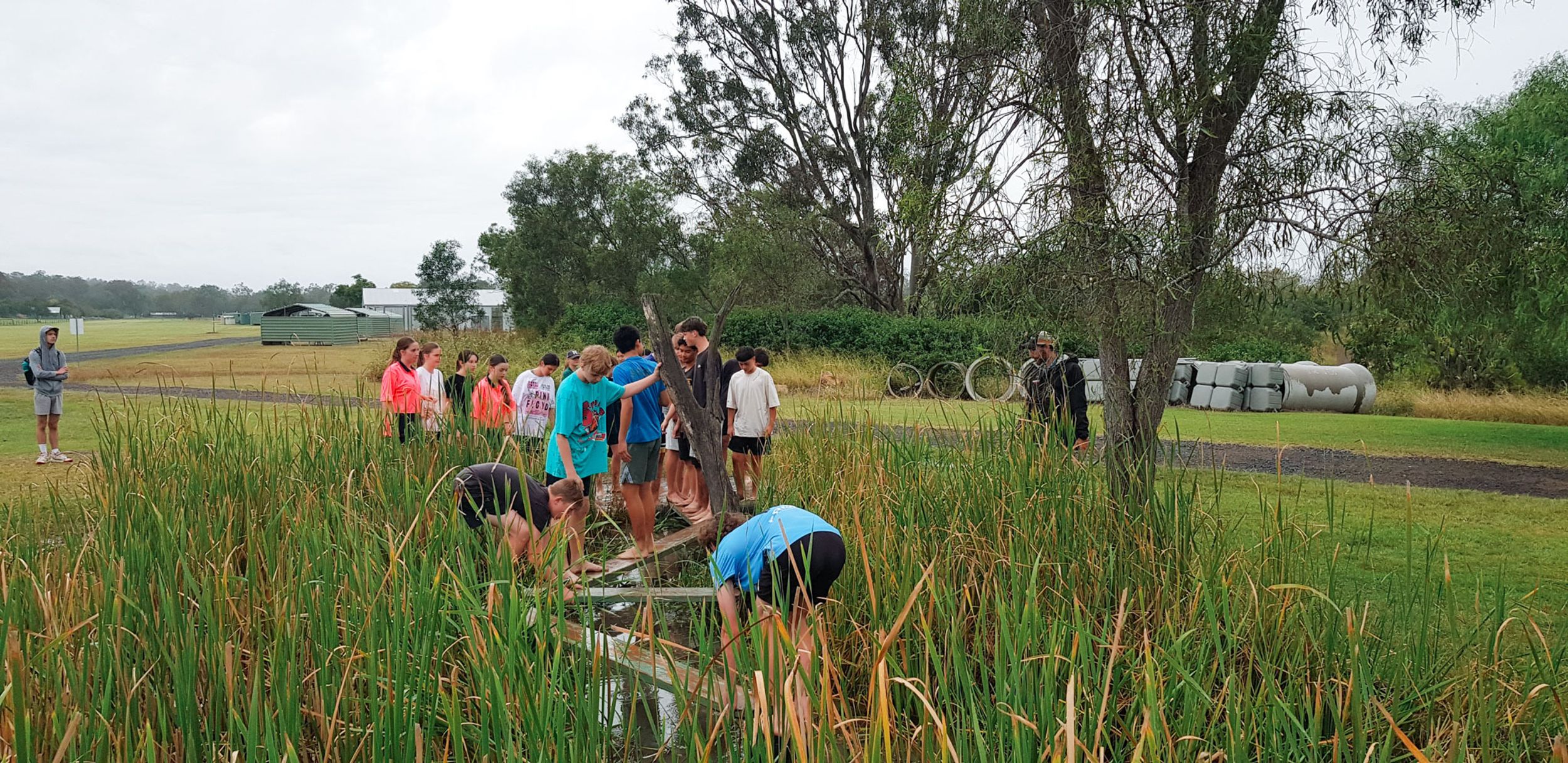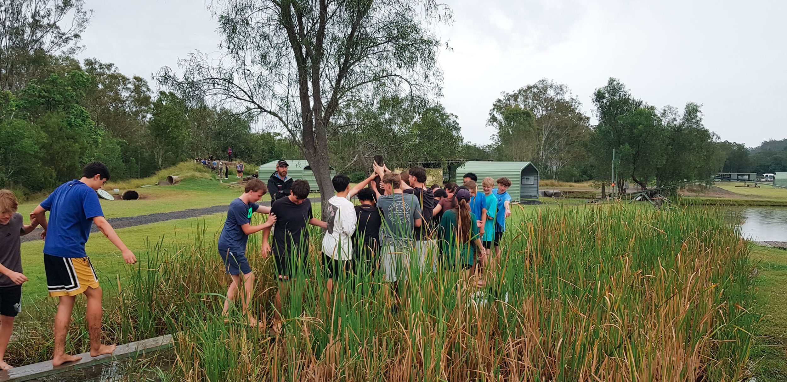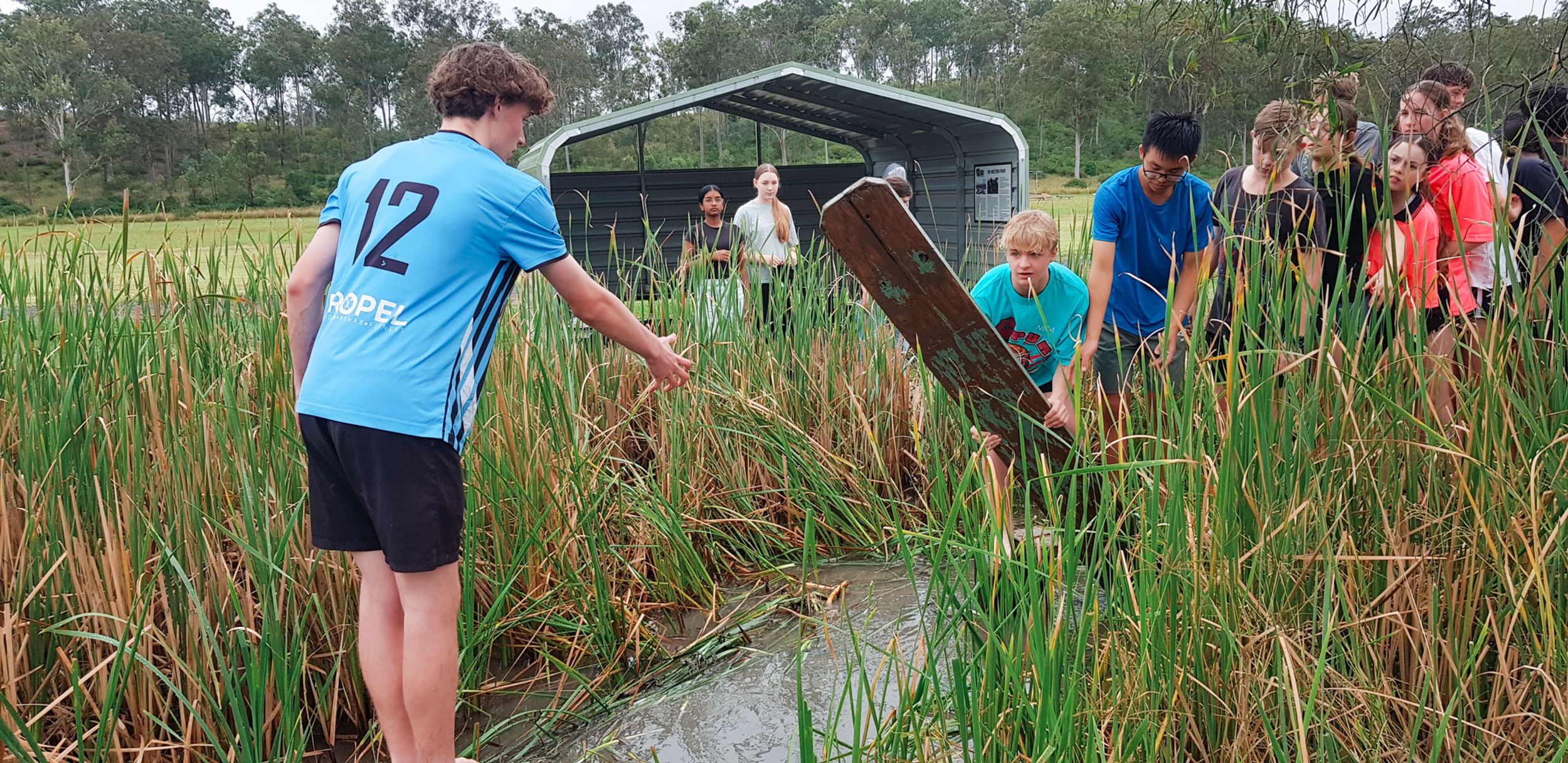 The wet and cool weather of the 30th of May would have deterred most from heading outdoors, but that didn’t stop the Year 9 students who headed to Emu Gully Adventure Education (Helidon) for the day. In conjunction with their HASS studies of World War One, the students attempted various team-building challenges linked to different wartime experiences. Maneuvering “tanks”, tunnelling under enemy trenches and crossing the treacherous “Western Front” were all enthusiastically pursued. Throngs of muddy students proved that few let the wet weather stop their progress.