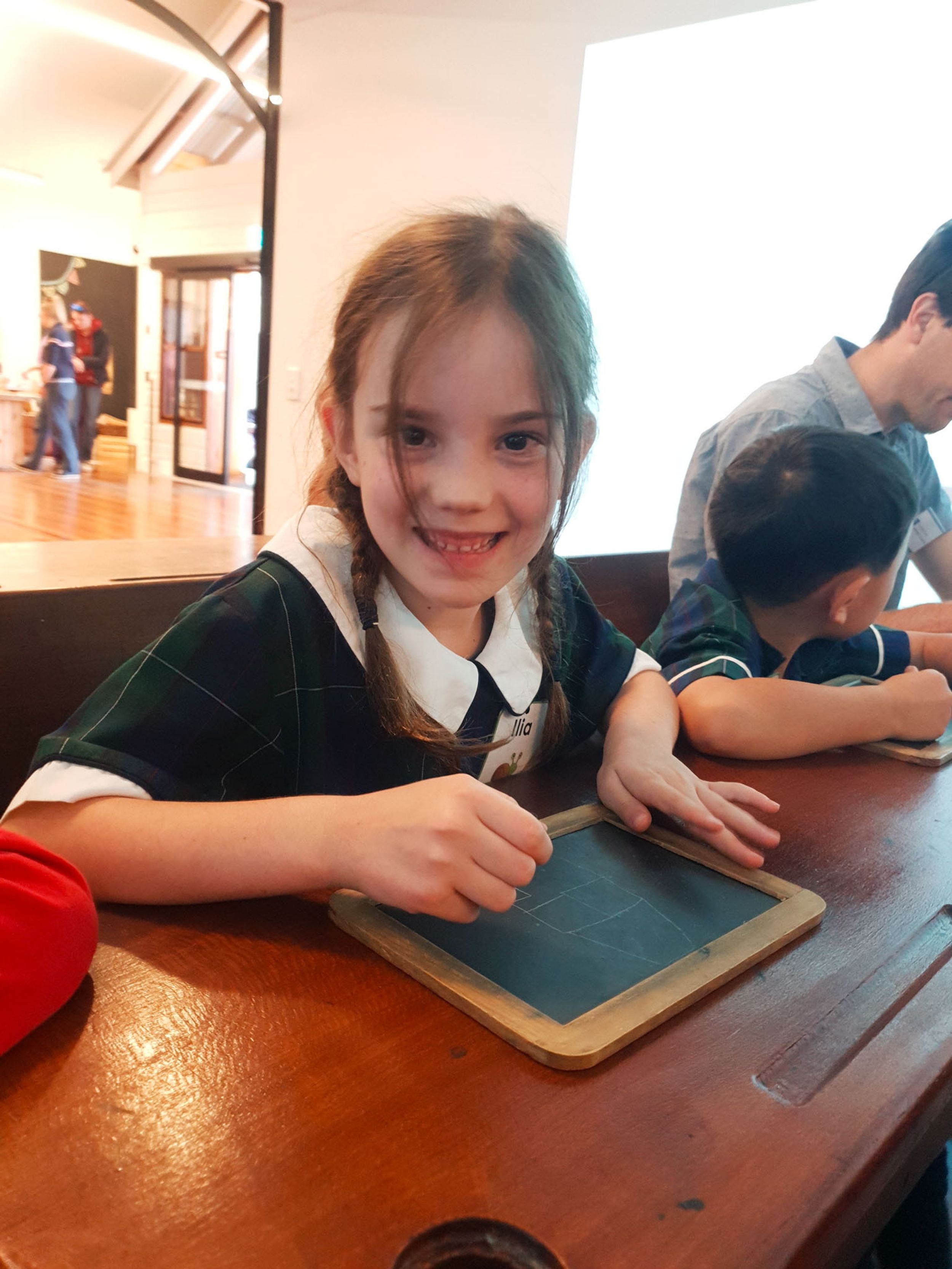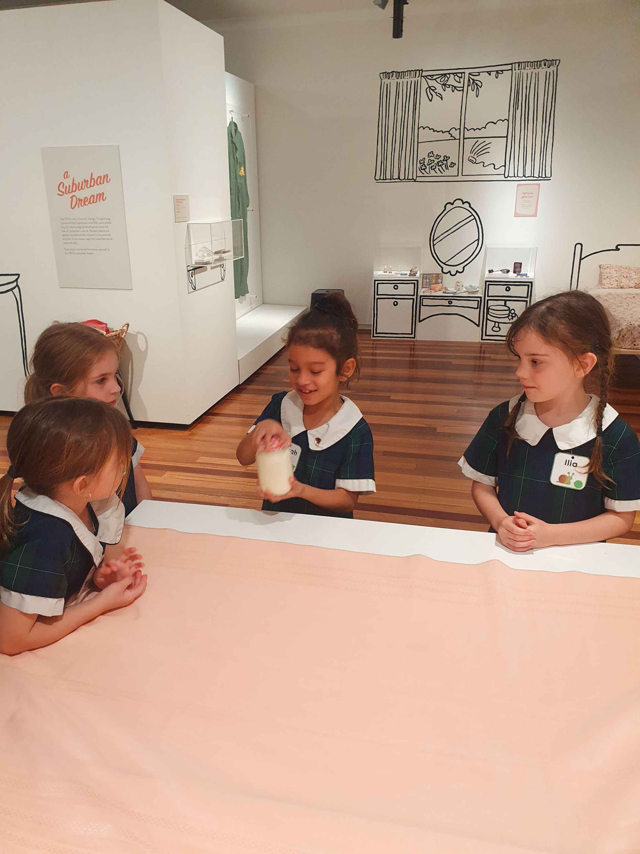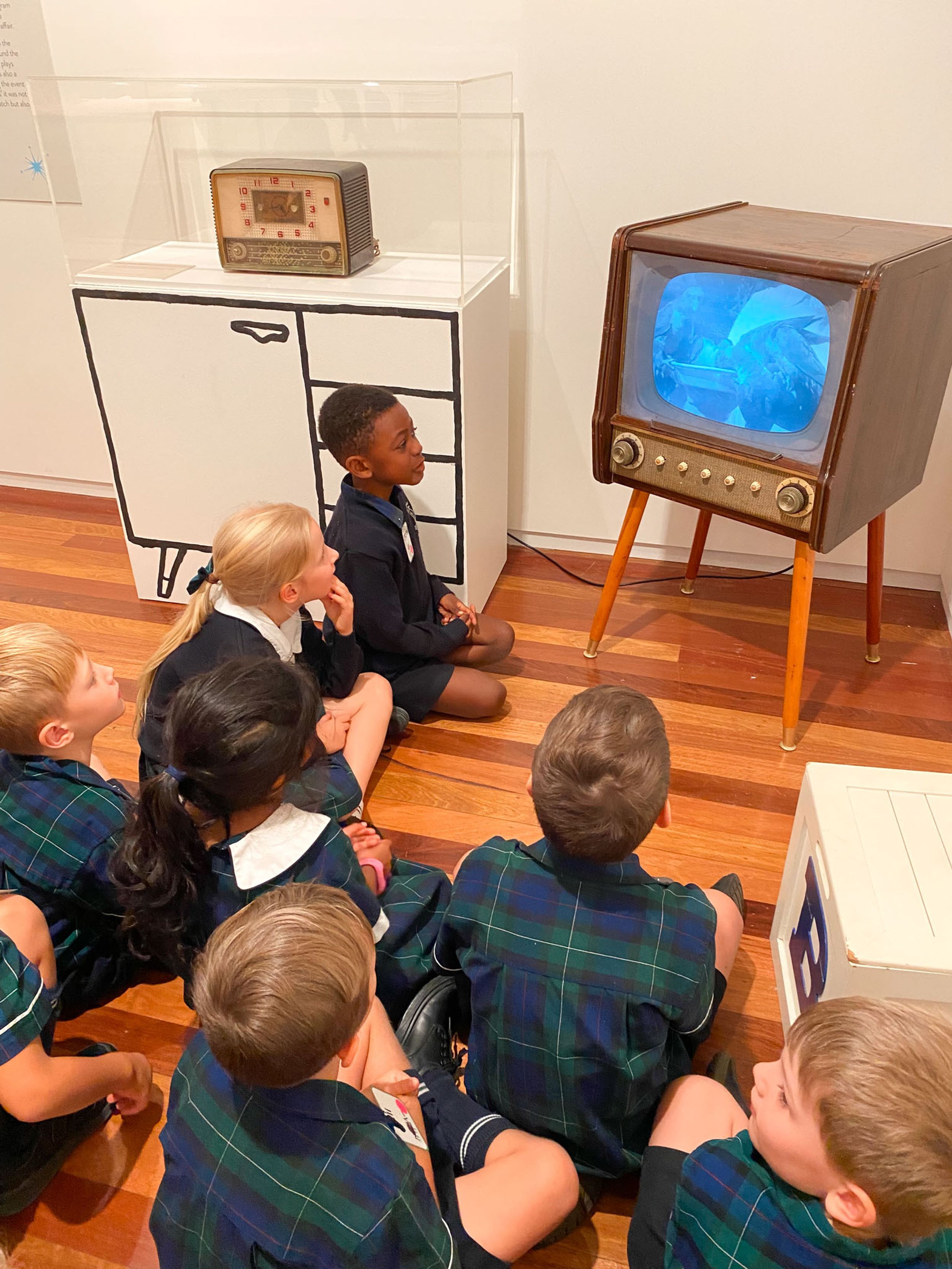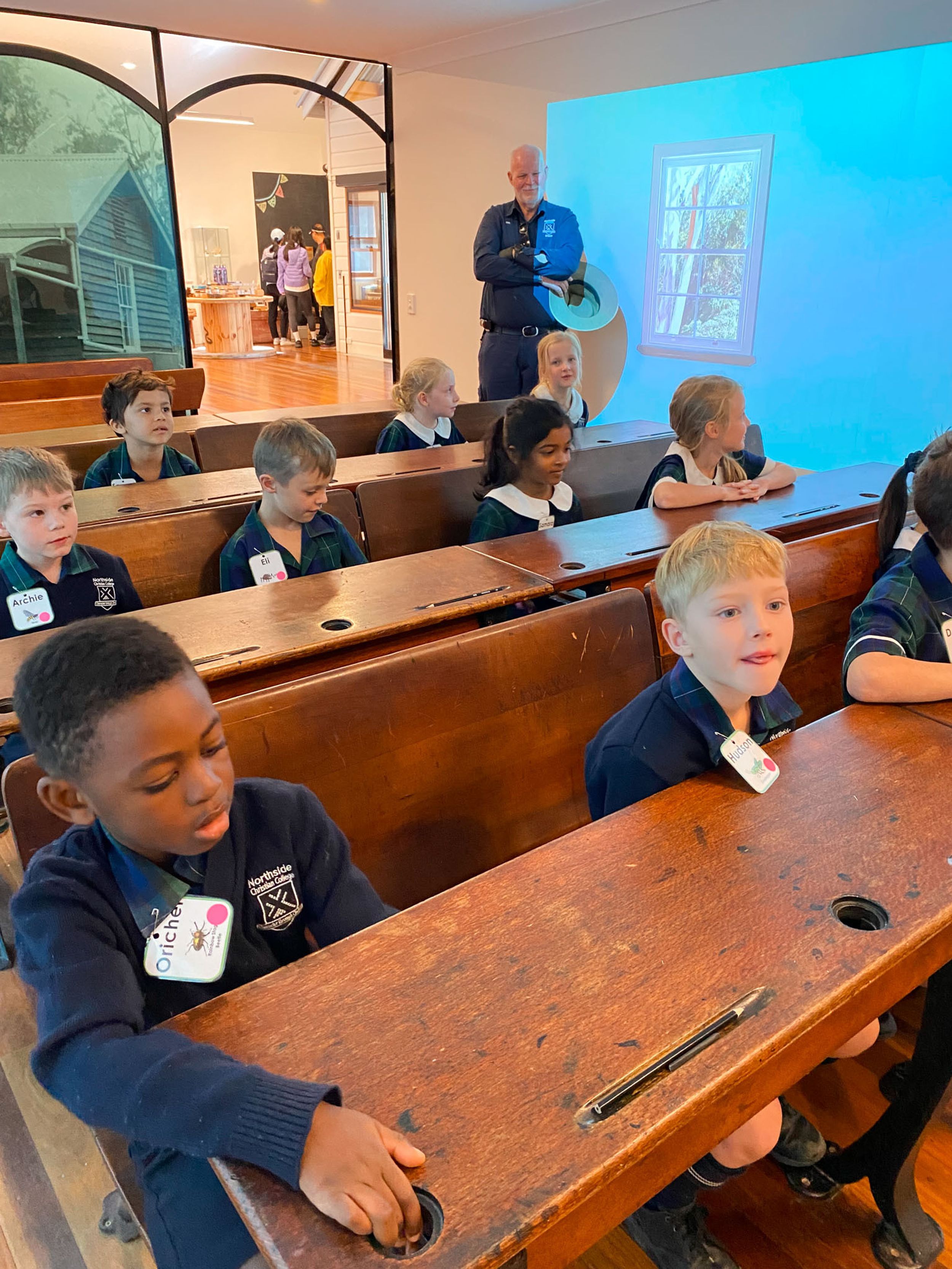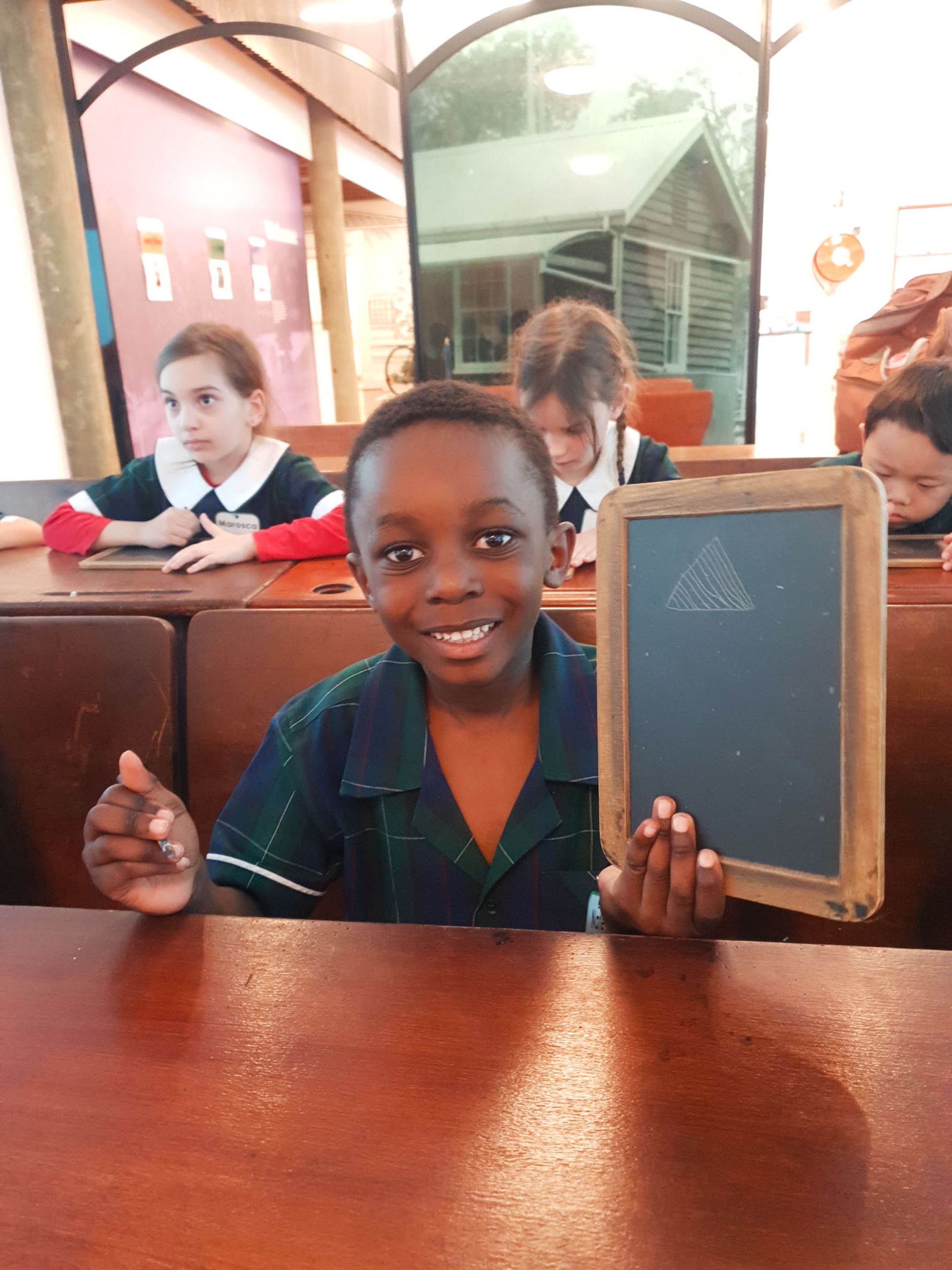 Year One students had an opportunity to take a step into the past on their recent excursion to the Pine Rivers Heritage Museum. After entering a 1950s classroom, they sat at long wooden desks, wrote on slates and helped to make worksheets using a hectograph (a process involving carbon paper and gelatin). Playing games from the past that incorporated jumping, rhymes and hula hoops provided much enjoyment. Many conversations and comparisons were made when they experienced 1950s life at dinner time, free from modern technology… watching a black and white TV show and making butter.