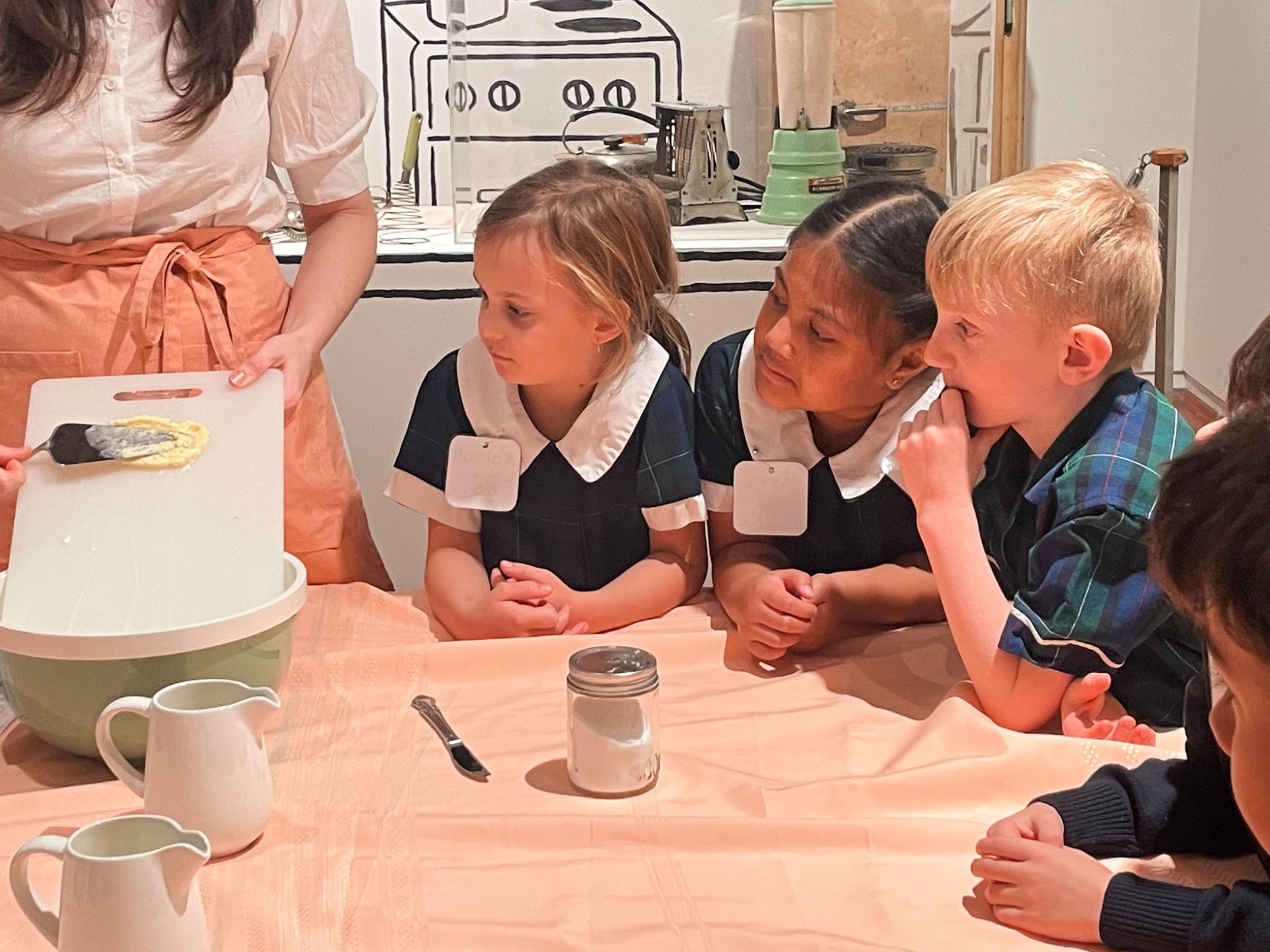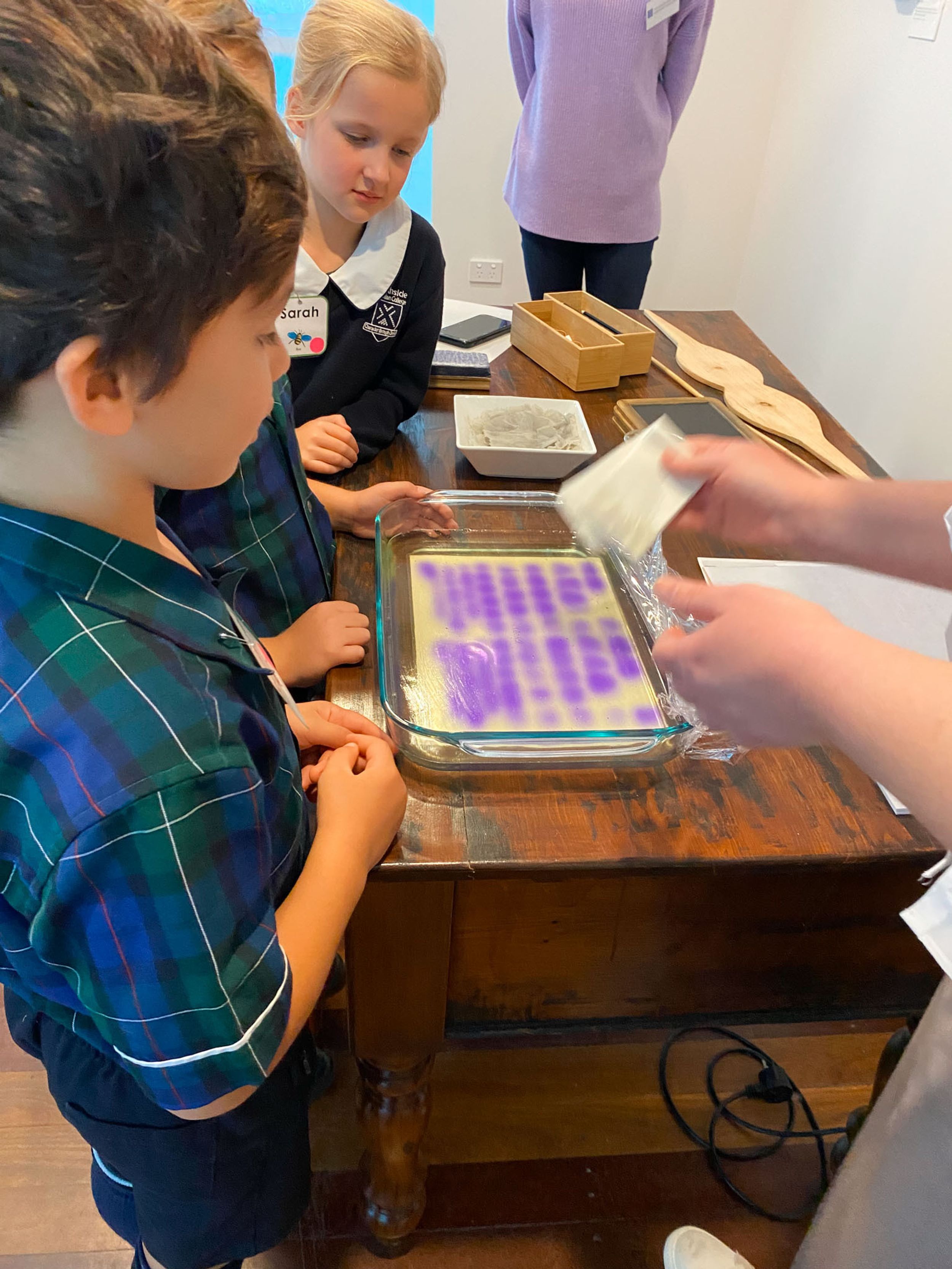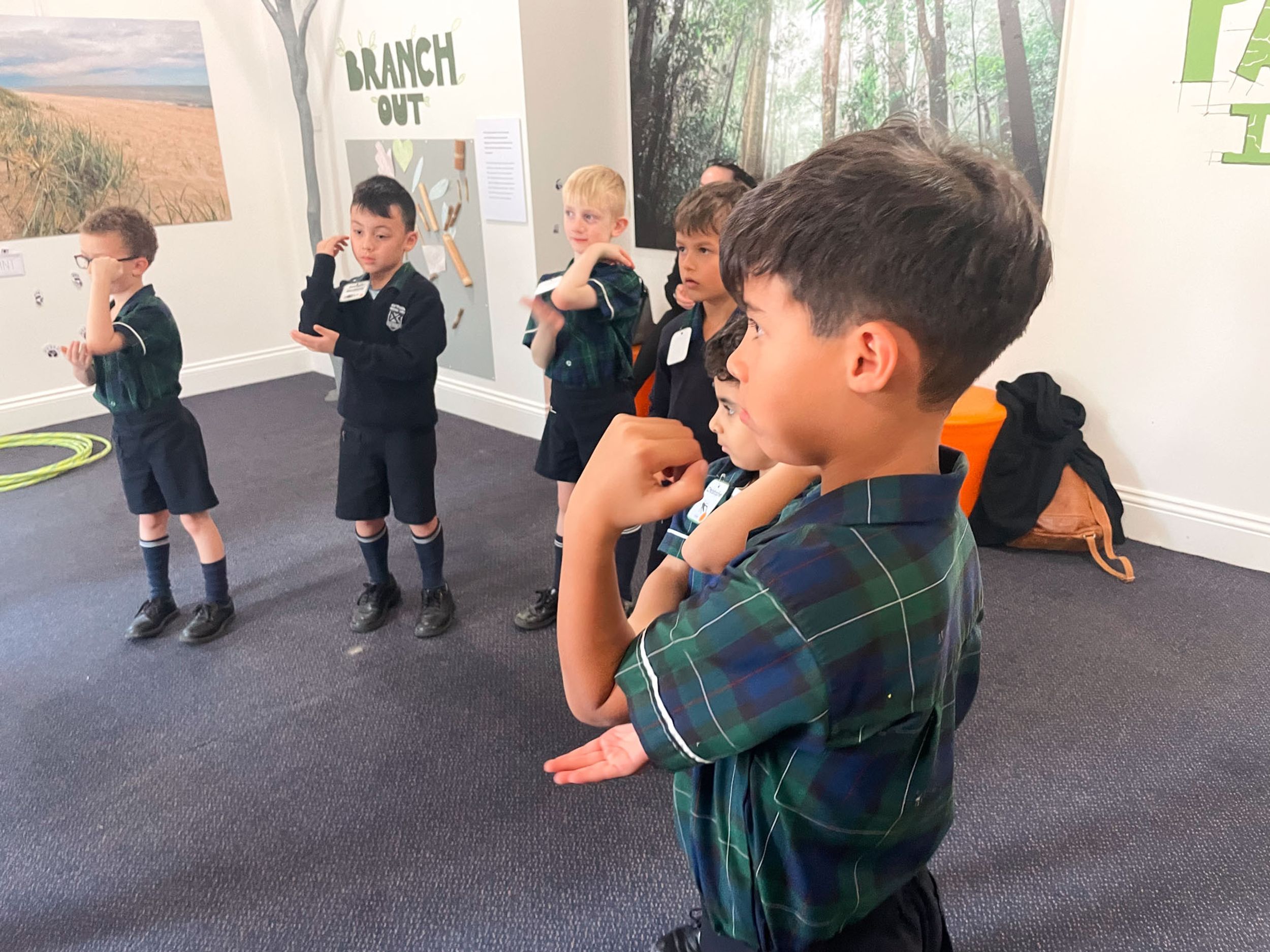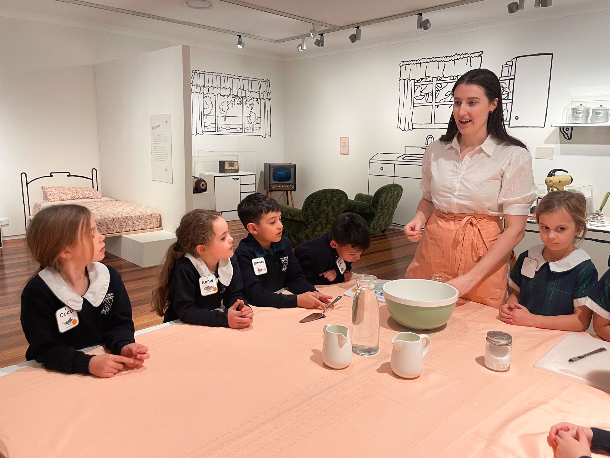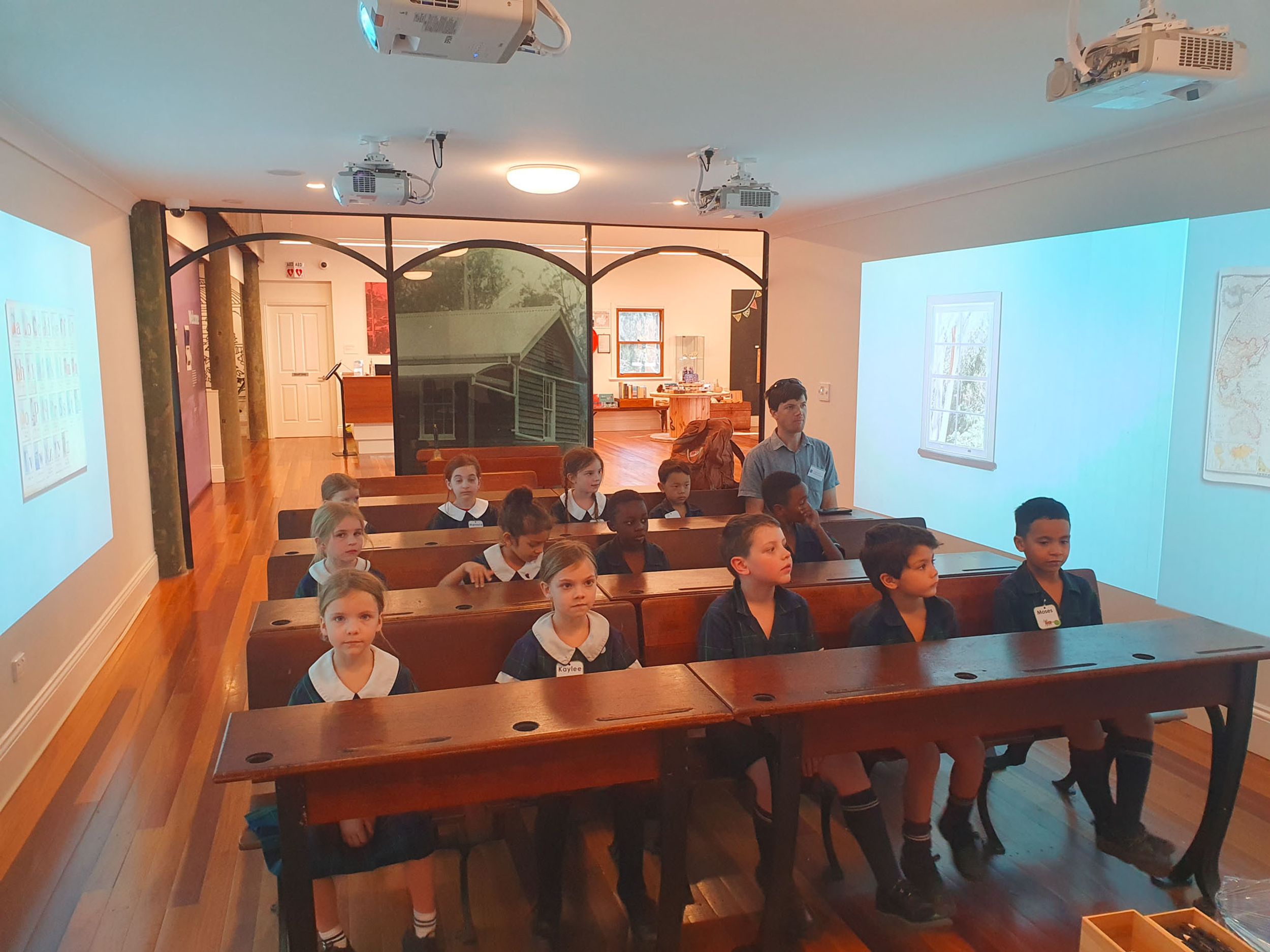 Year One students had an opportunity to take a step into the past on their recent excursion to the Pine Rivers Heritage Museum. After entering a 1950s classroom, they sat at long wooden desks, wrote on slates and helped to make worksheets using a hectograph (a process involving carbon paper and gelatin). Playing games from the past that incorporated jumping, rhymes and hula hoops provided much enjoyment. Many conversations and comparisons were made when they experienced 1950s life at dinner time, free from modern technology… watching a black and white TV show and making butter.